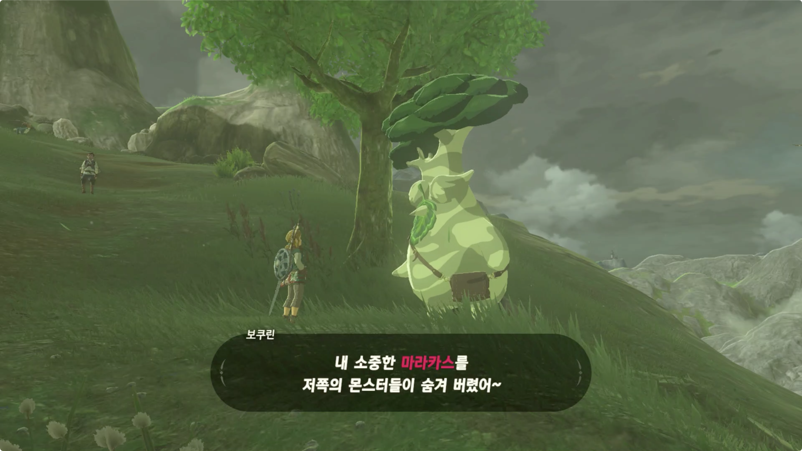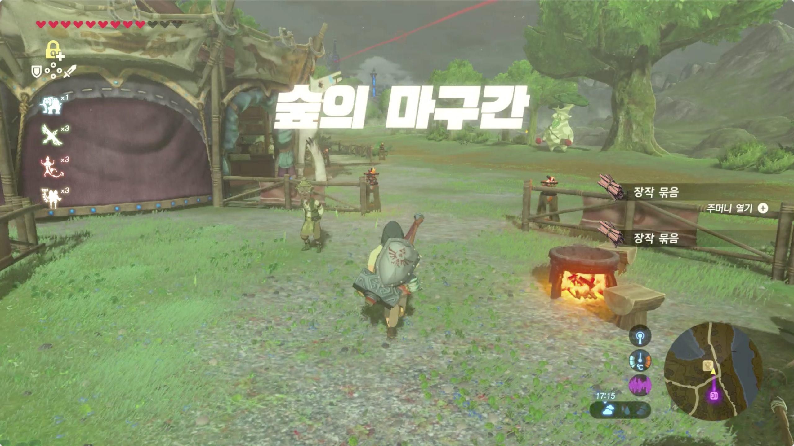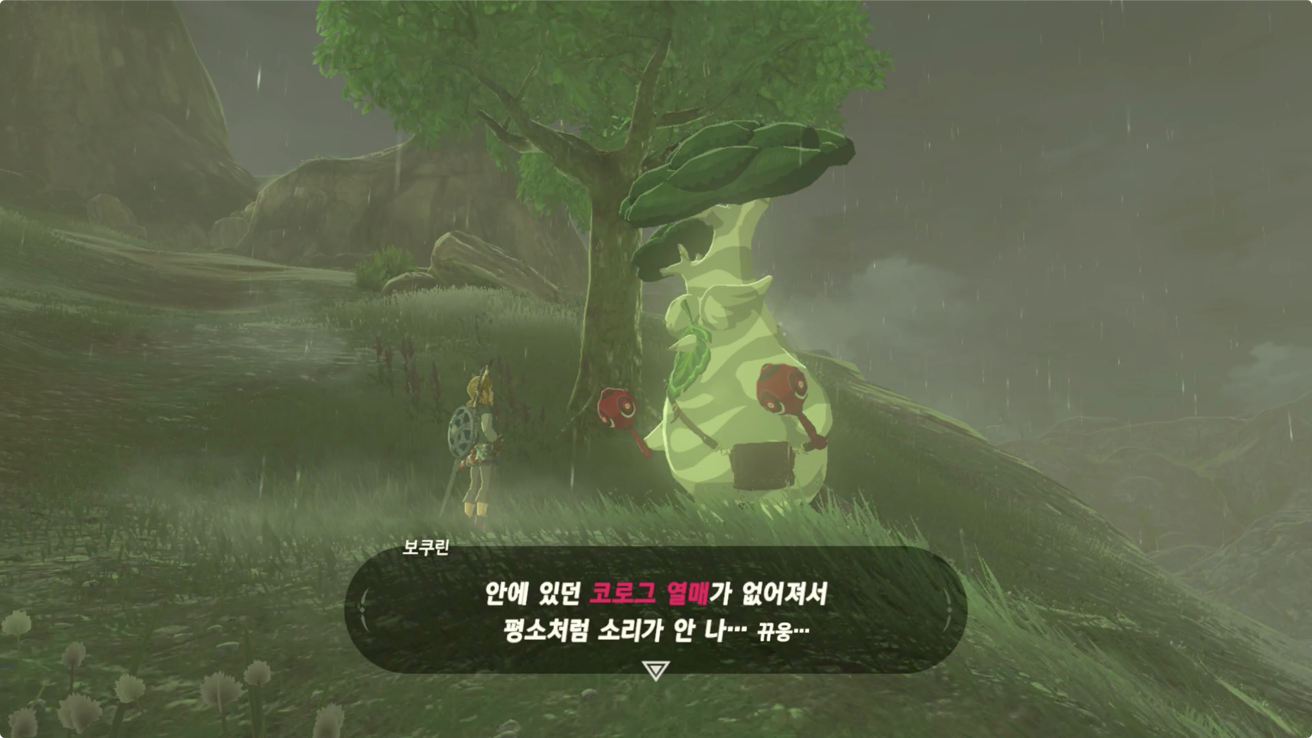 코로그 열매를 찾아서 가져다 주면 무기, 방패, 활 중 원하는 인벤토리를 확장시켜주며 3번정도 확장시켜주면 돌아가야 한다면서