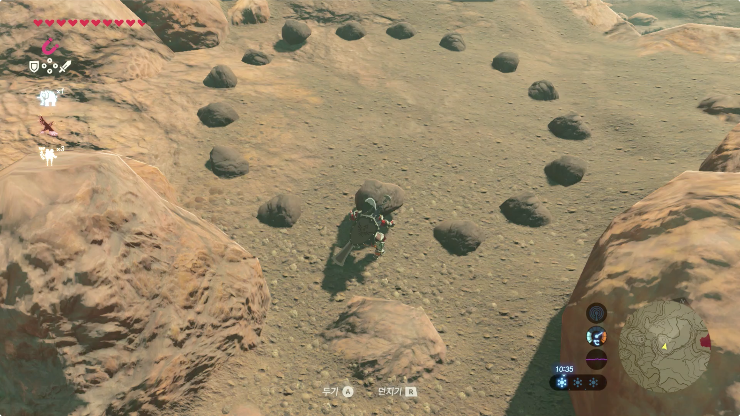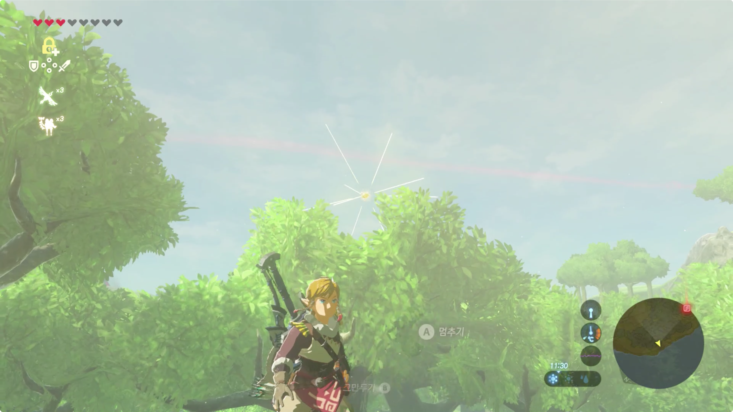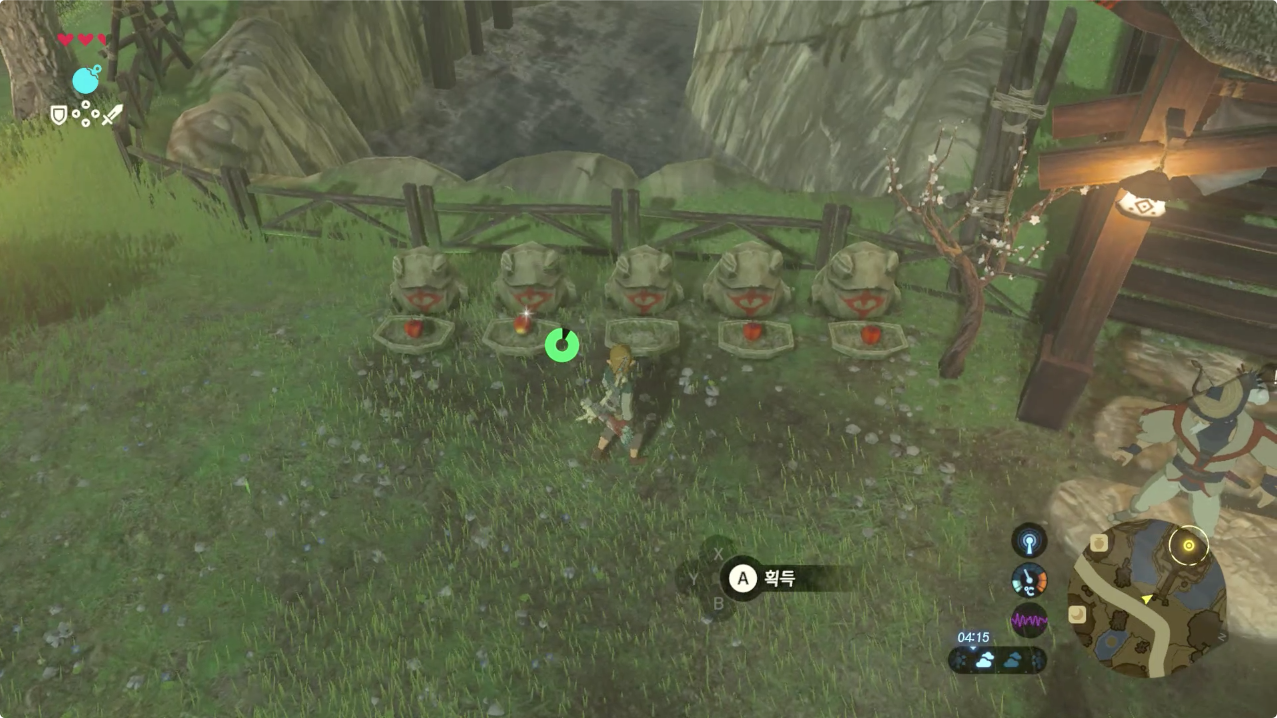 그리고 제자리에 항상 있는 녀석들도 있습니다. (이건 보통 어딘가 꼭대기에 많이 있습니다) 근처에 가서 조사를 하면 코로그를 발견할 수 있습니다.
