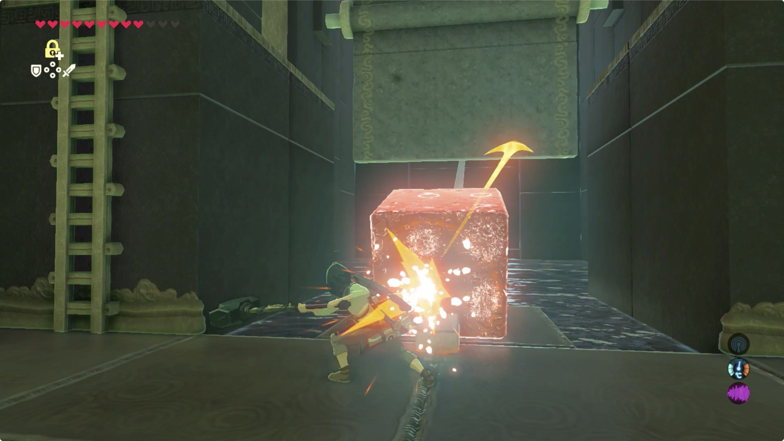 다음은 돌을 밀어 다리를 내리는건데 이건 레일이 있으니 방향이 어느정도 틀어져도 문제 없다. 타임 록 걸고 때려서 길을 만들자