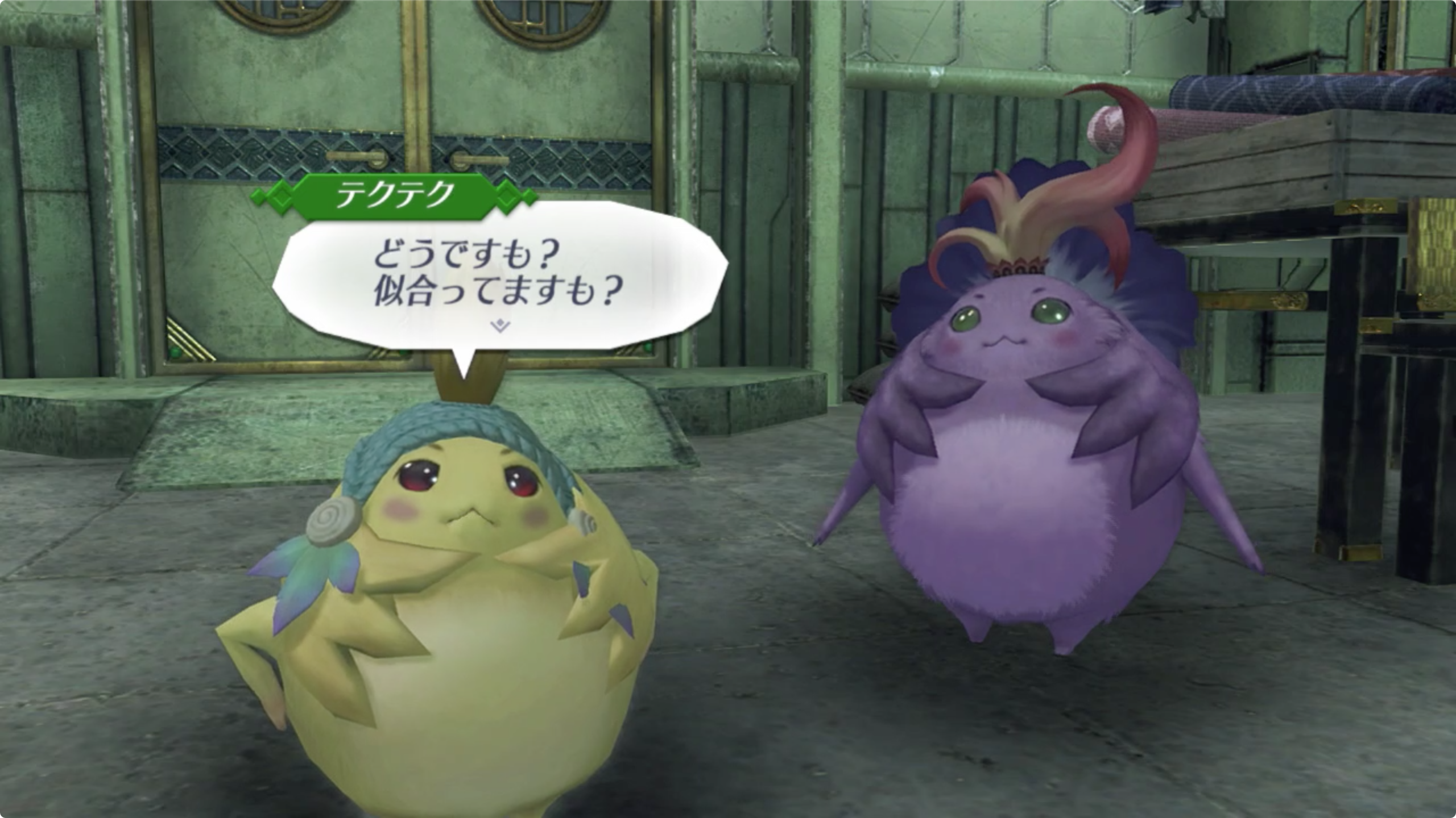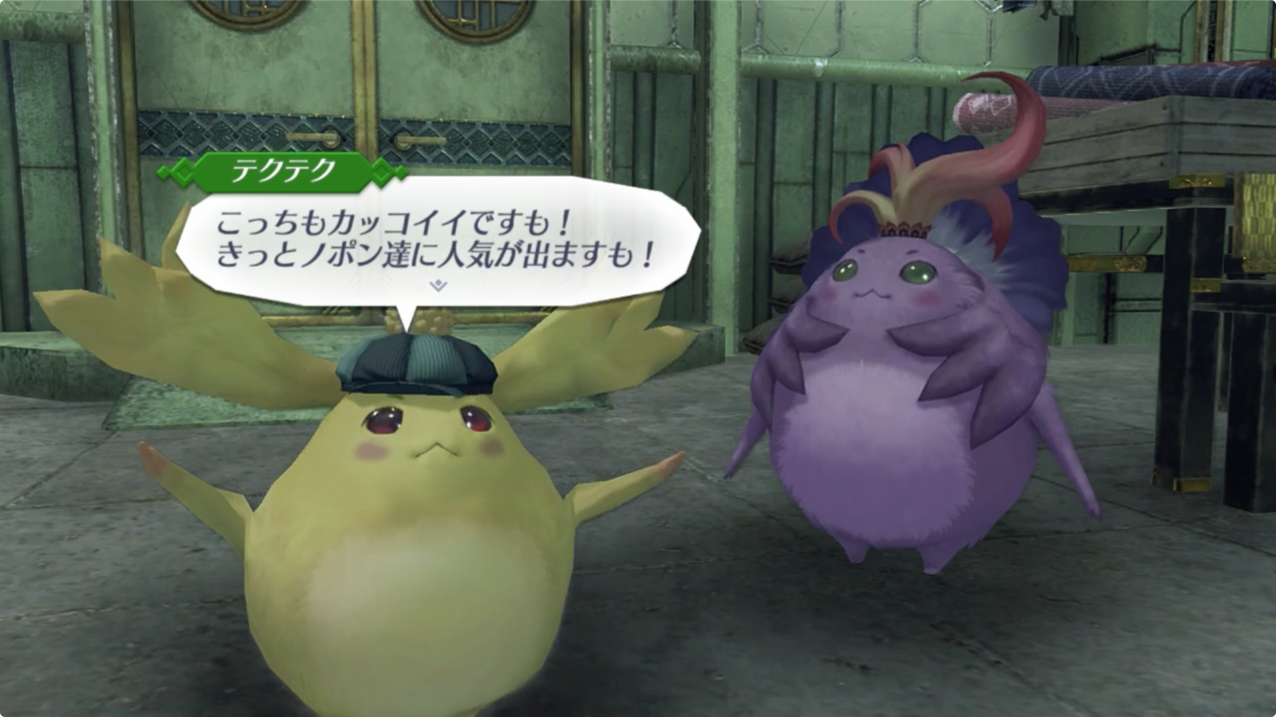 - 화살표를 따라가면 되는데 정문으로 들어와 우측의 기둥 옆에 테쿠테쿠(テクテク)라는 노폰족에게 말을 걸면 된다.