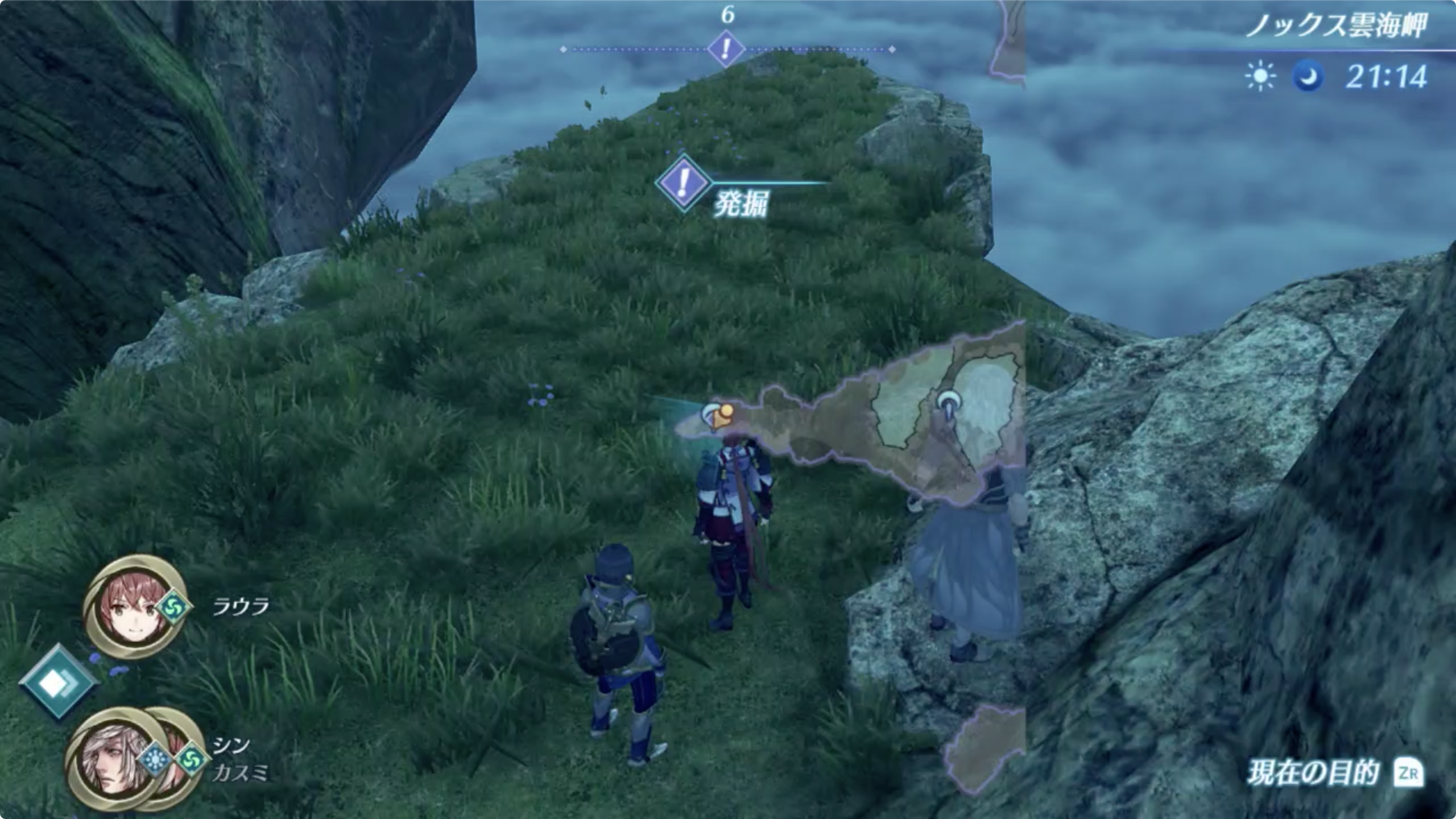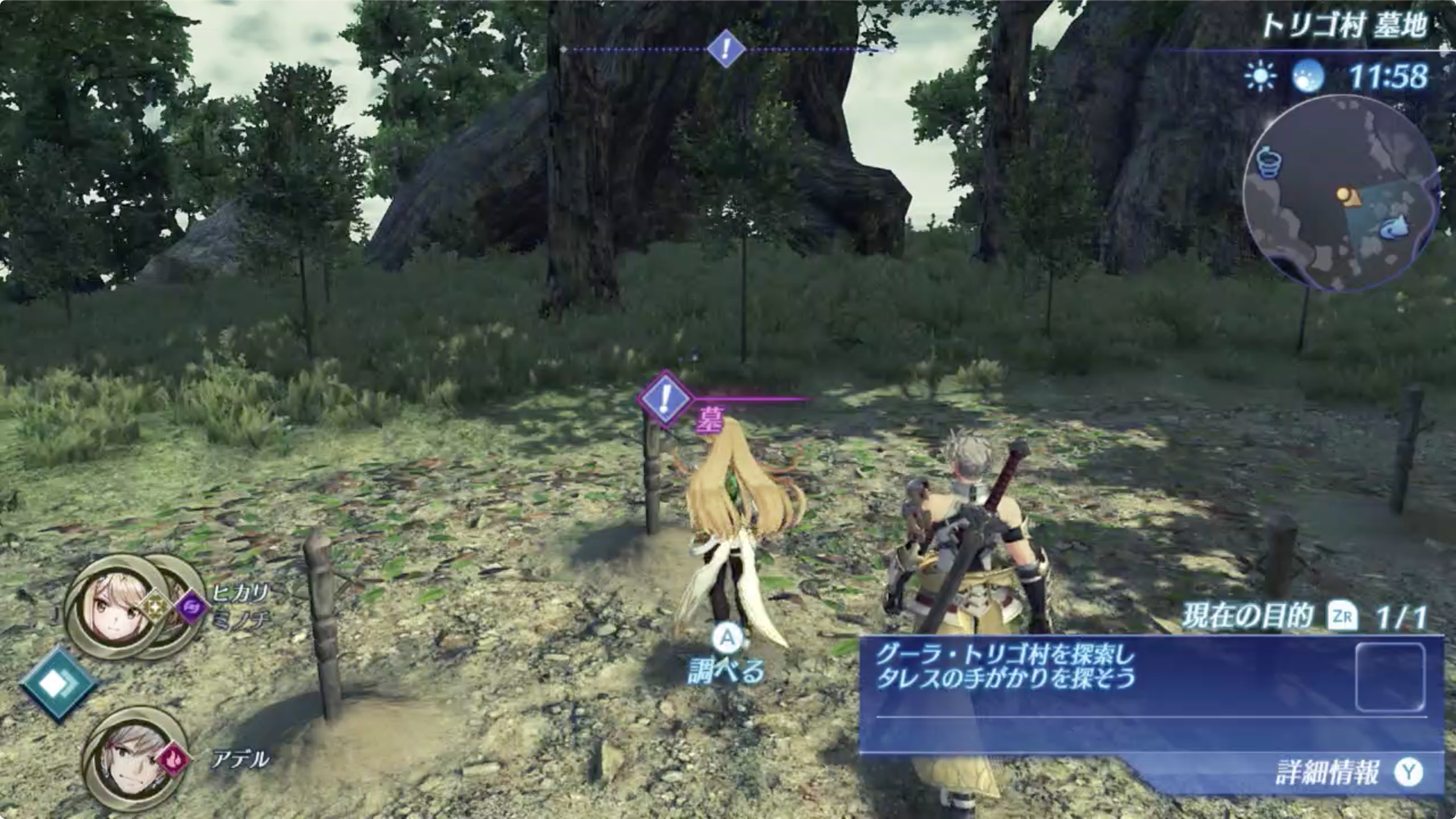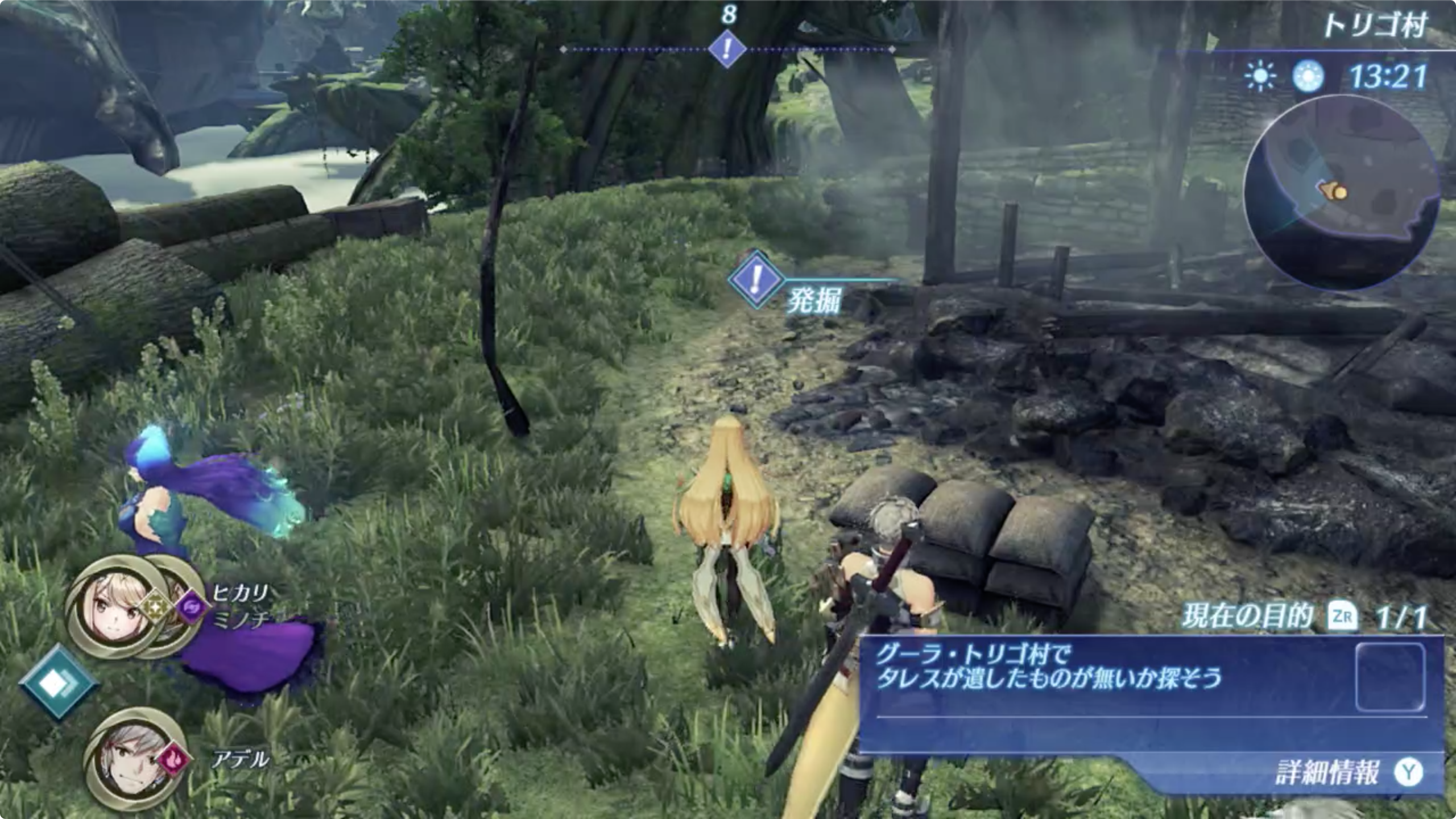 2. 토리고 마을에서 타레스가 남긴 것을 찾아야 하는데, 나침반을 따라 이동하면 발굴 포인트를 발견 할 수 있다.