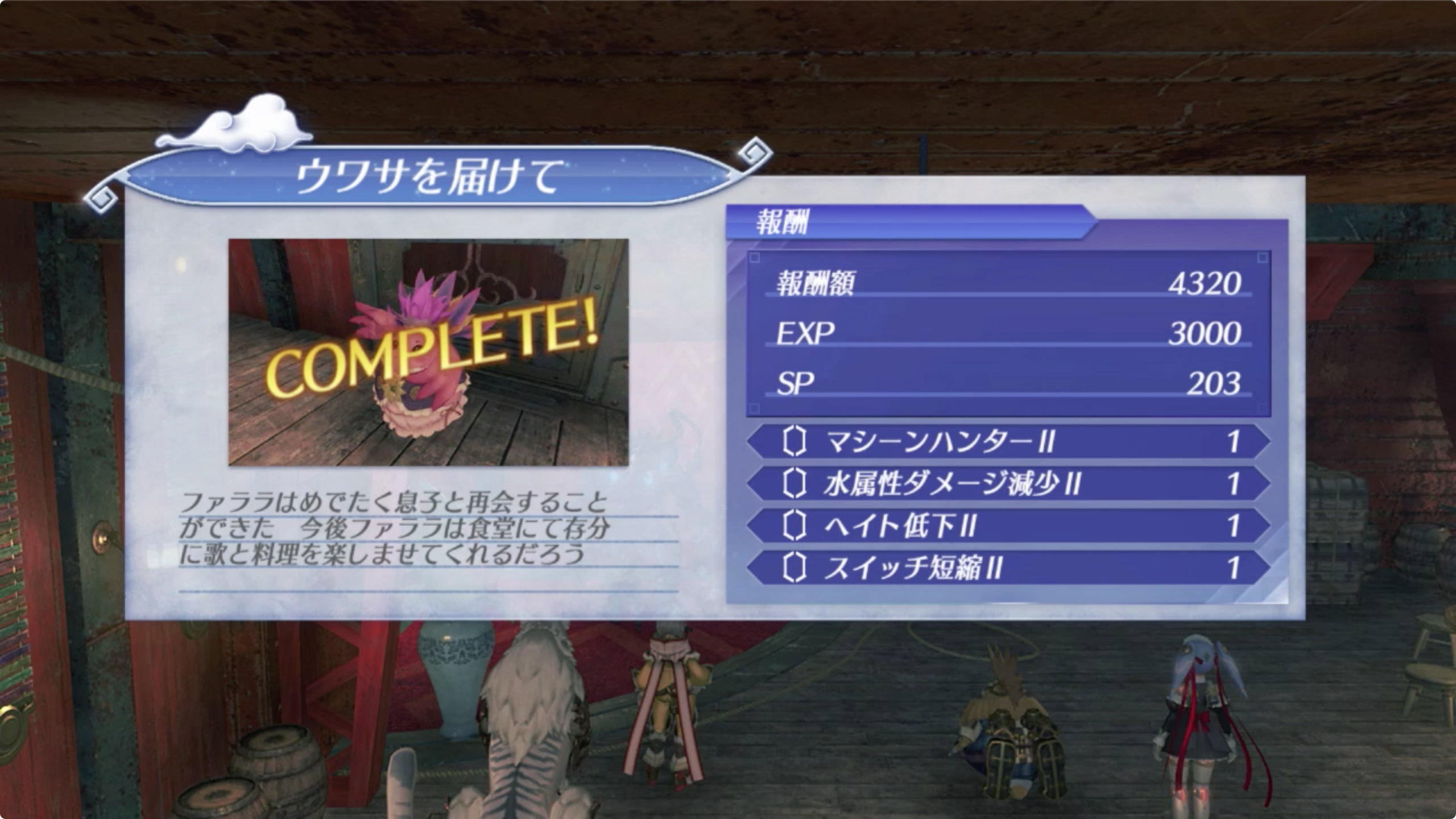 11. 하라펫코 식당 (ハラペッコ食堂)으로 돌아와 화라라와 대화를 하면 퀘스트 완료.