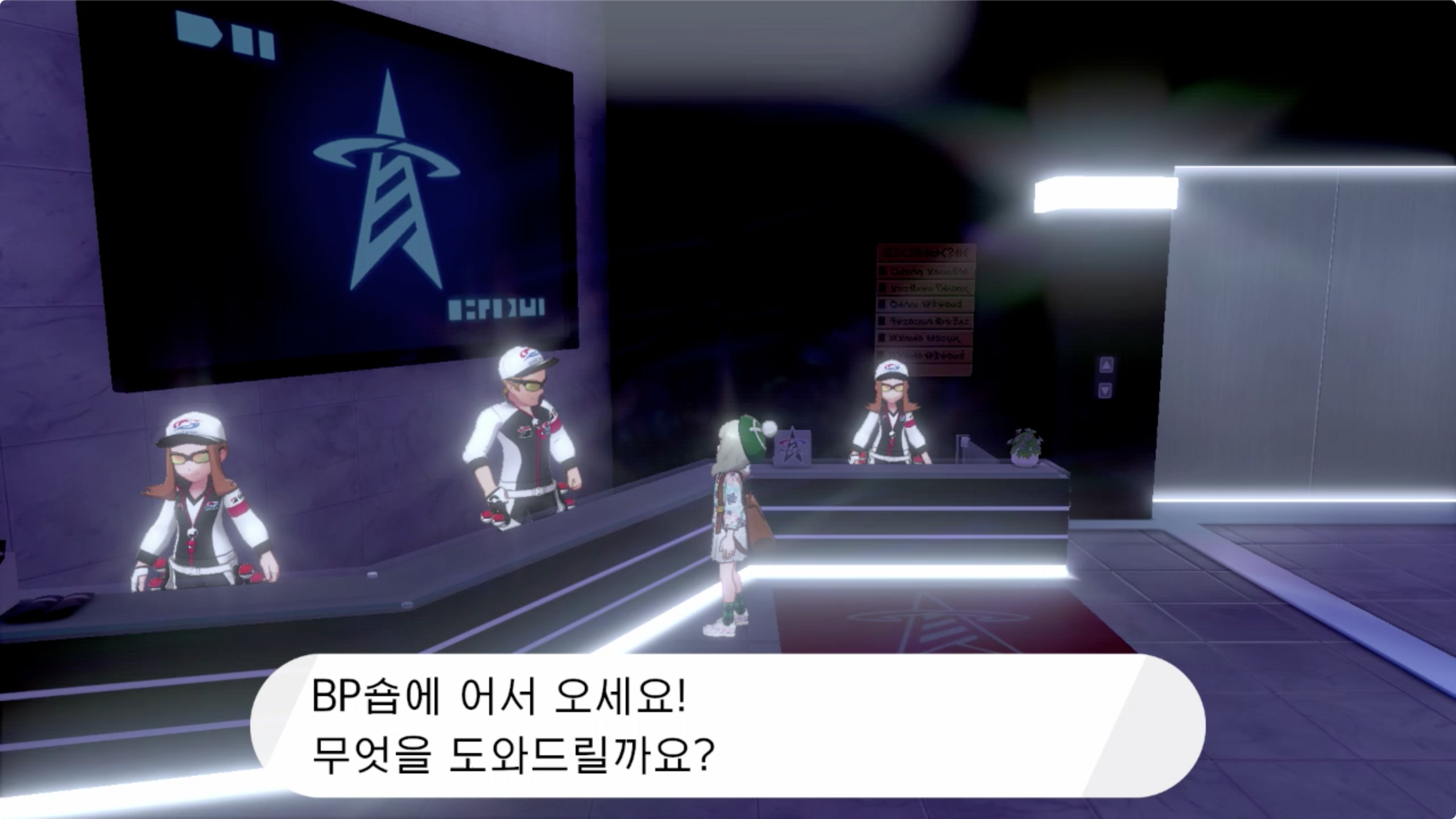 왼쪽편 2명은 BP숍으로 판매하는 물건이 서로 다릅니다. 배틀을 통해 BP를 획득 할 수 있습니다.