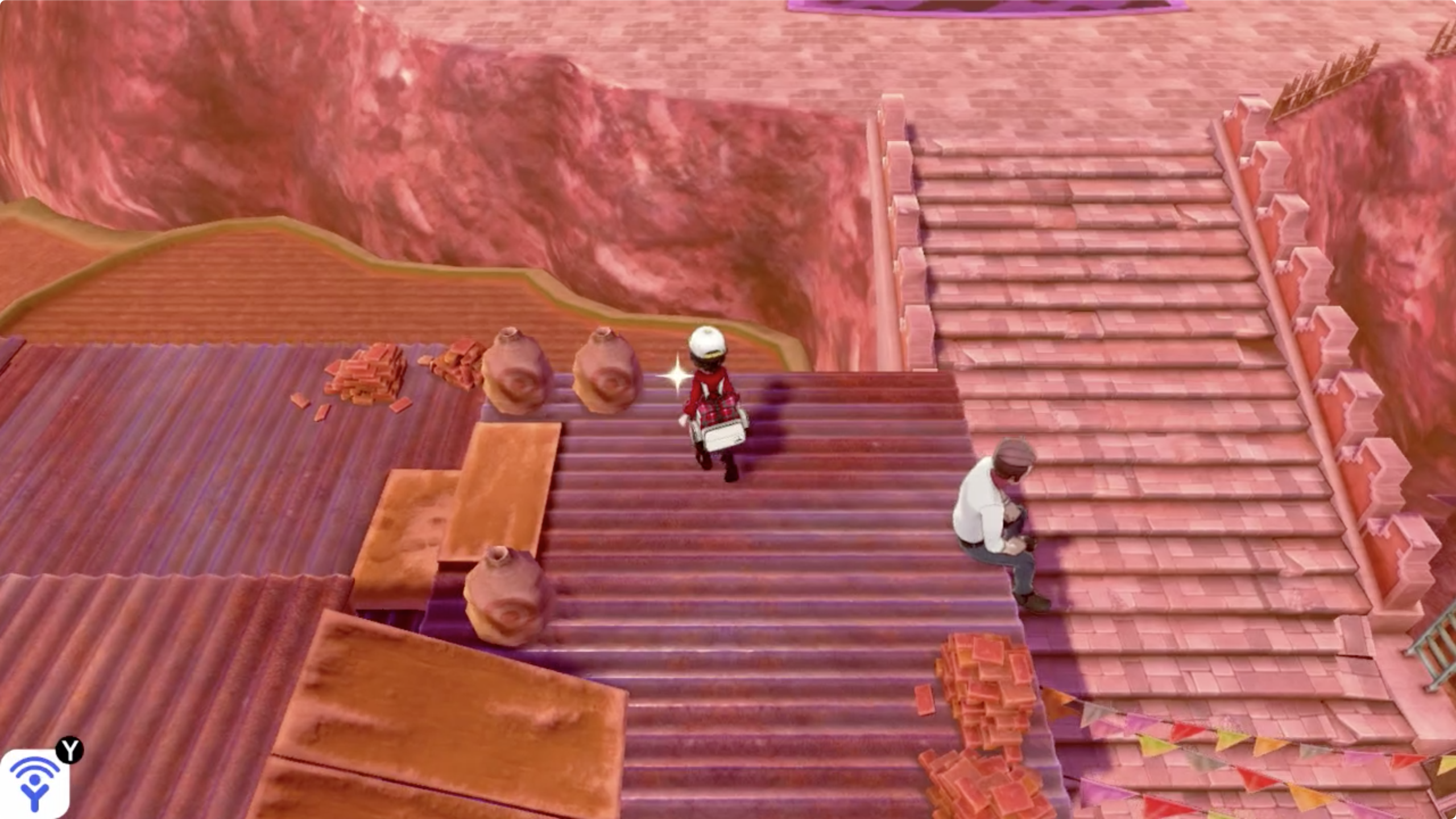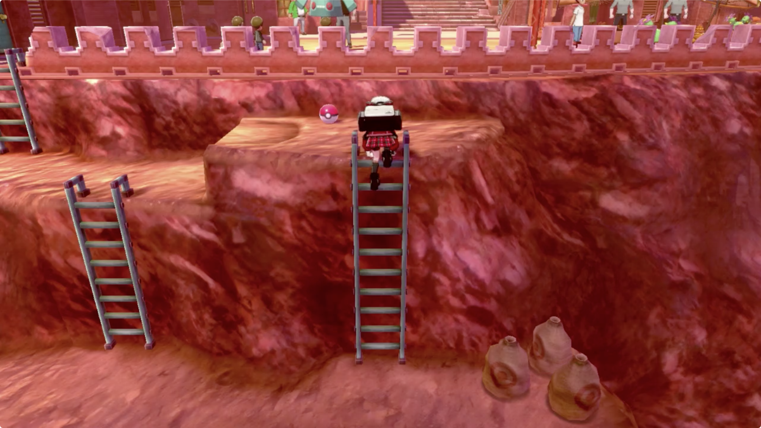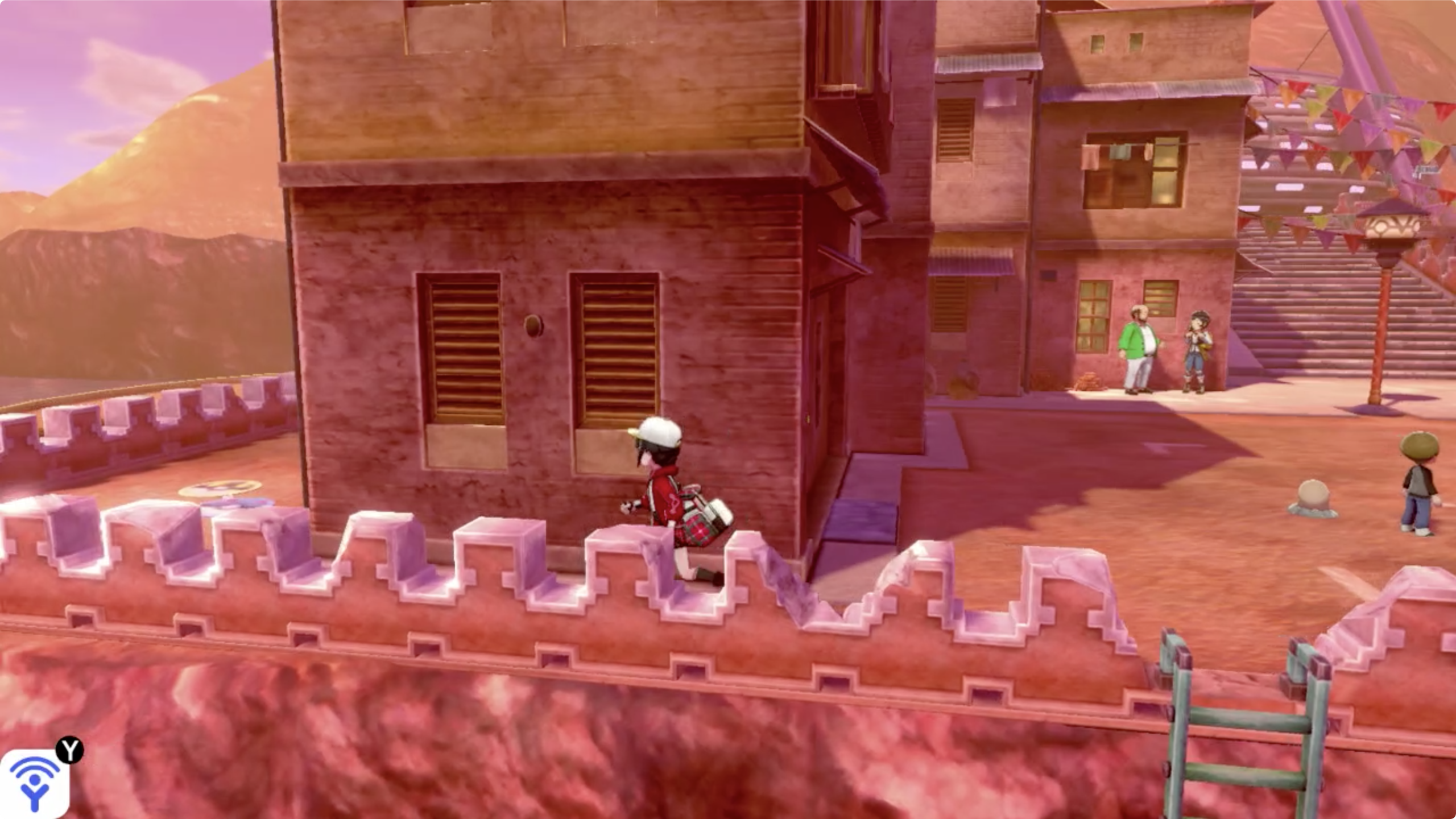 마을 왼쪽 끝에 있는 집 뒤로 이동하면 사다리를 이용해 건물 위로 올라 갈 수 있습니다.