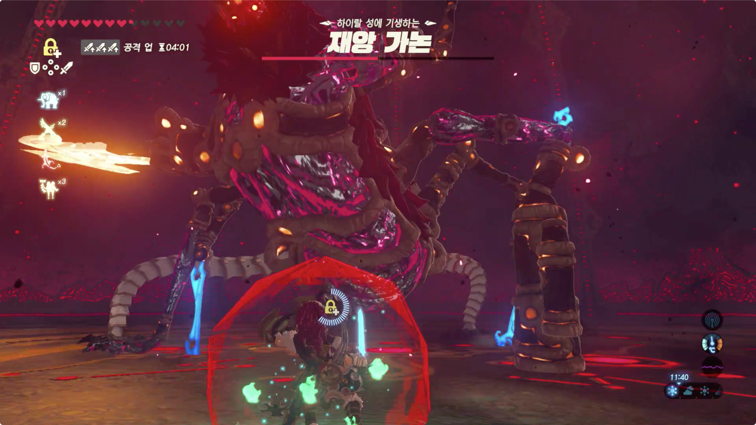 (반대로 마스터 모드는.... 공격에 틈이 생기면 가논이 계속해서 체력 회복을 하기에 거의 모든 공격을 러쉬로 공격해주고 원거리 공격을 패링으로 처리해줘야 합니다)