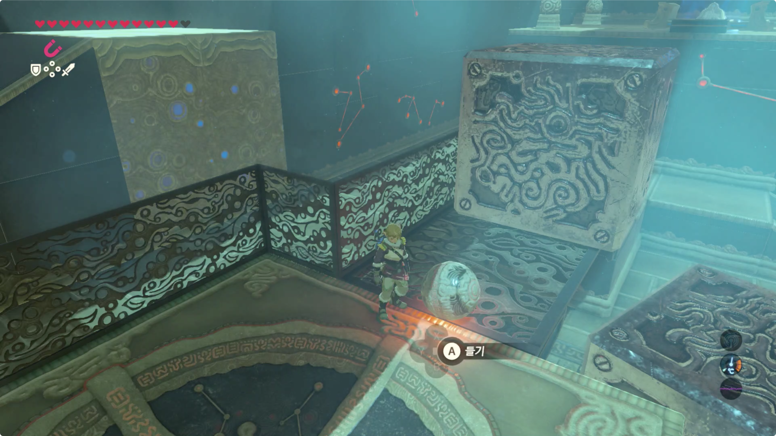 우선 돌로된 공을 가지고 내려와 어디 굴러다니면 귀찮으니 구멍에 잠시 넣어주자.