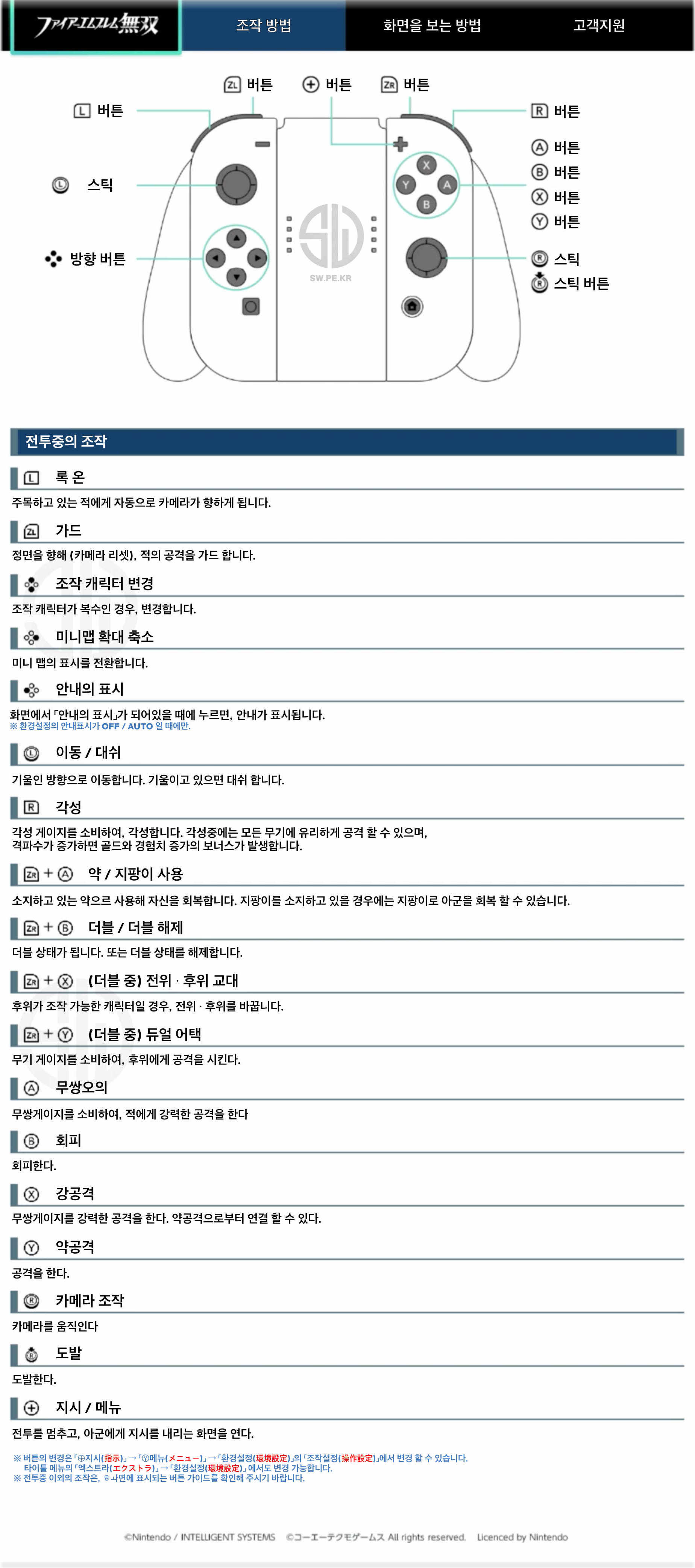 파이어 엠블렘 무쌍 - 전자설명서 (조작방법)