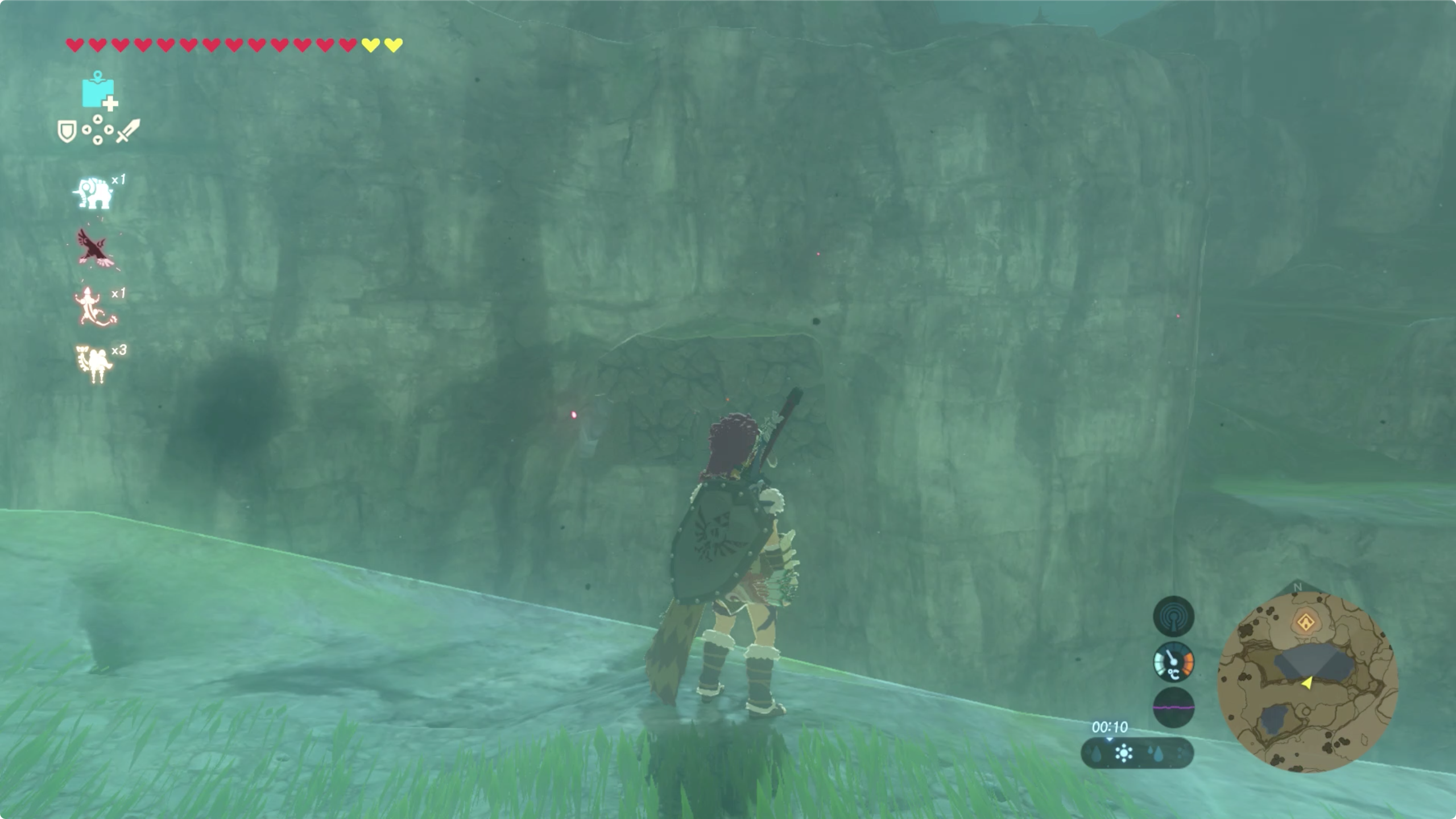 멀리서 바라보면 절벽의 한쪽이 모양이 이상하다. 저 부분을 파괴하고 들어가면 되는데...