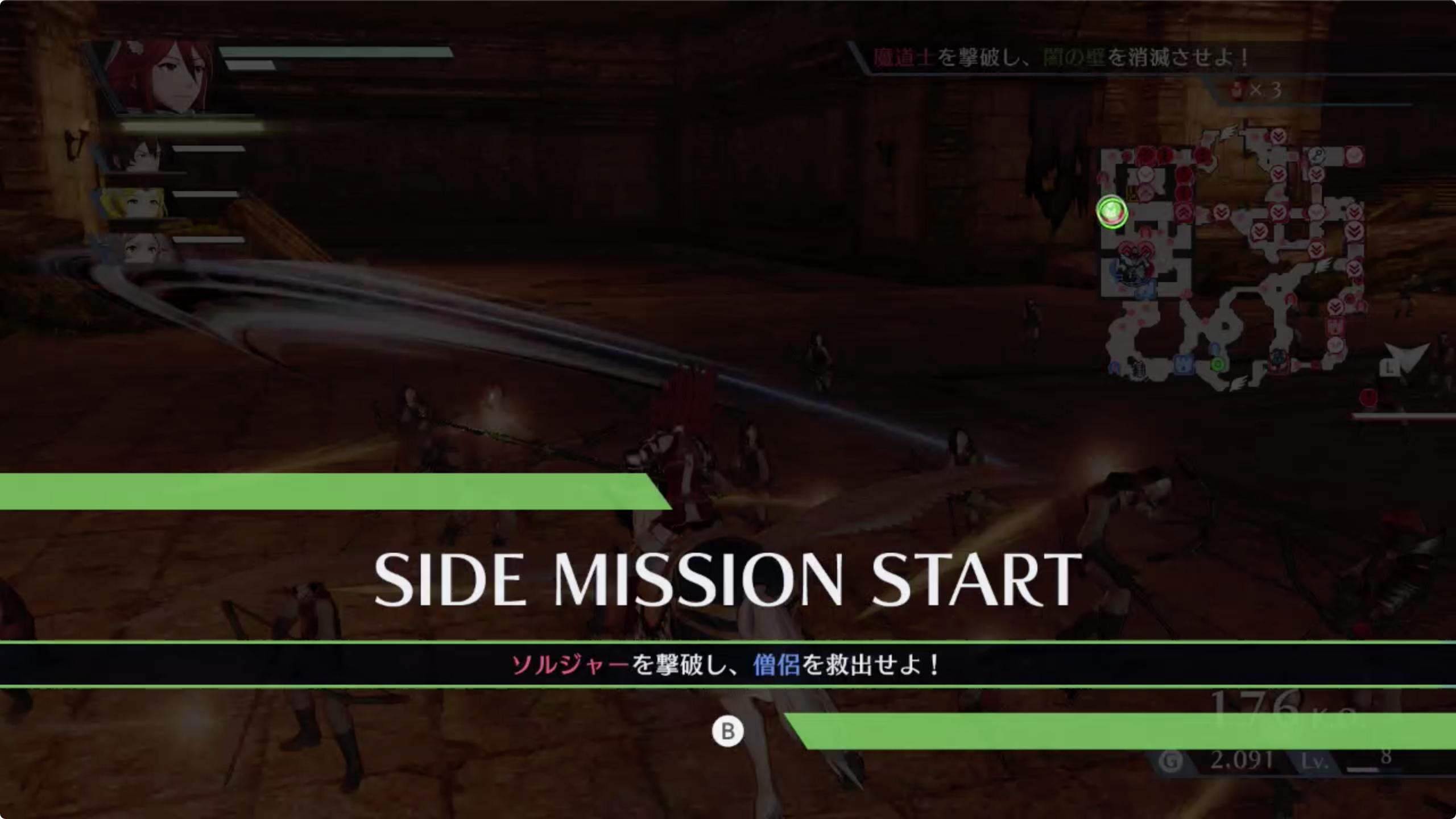 일정시간이 지나면 사이드 미션 [솔져를 격파하고, 승려를 구출하라!]가 발생.