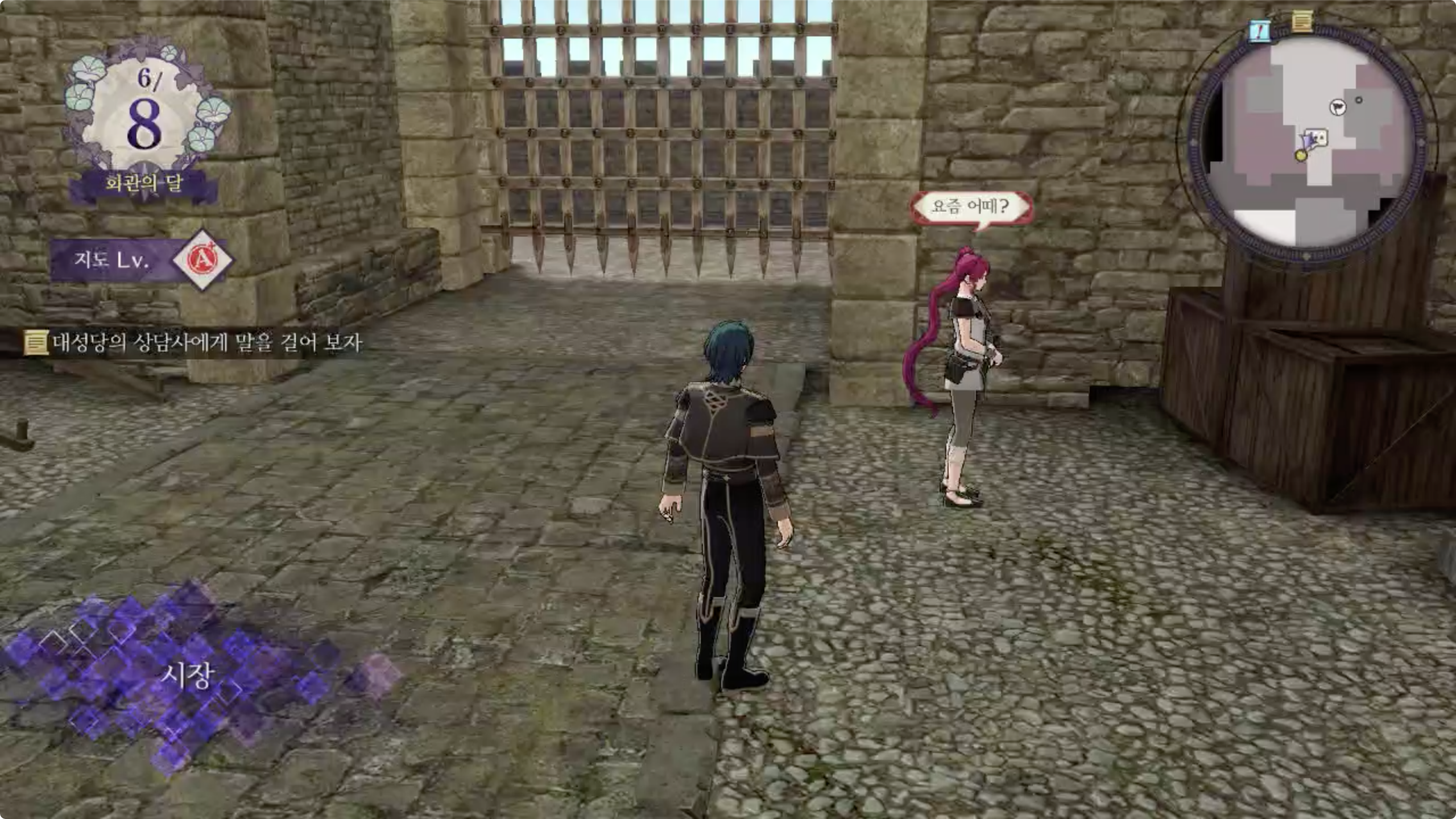 따로 퀘스트 마크는 나타나지 않으며 시장 안쪽에 있는 안나에게 대화를 걸면 특별한 조건 없이 동료로 영입할 수 있습니다.