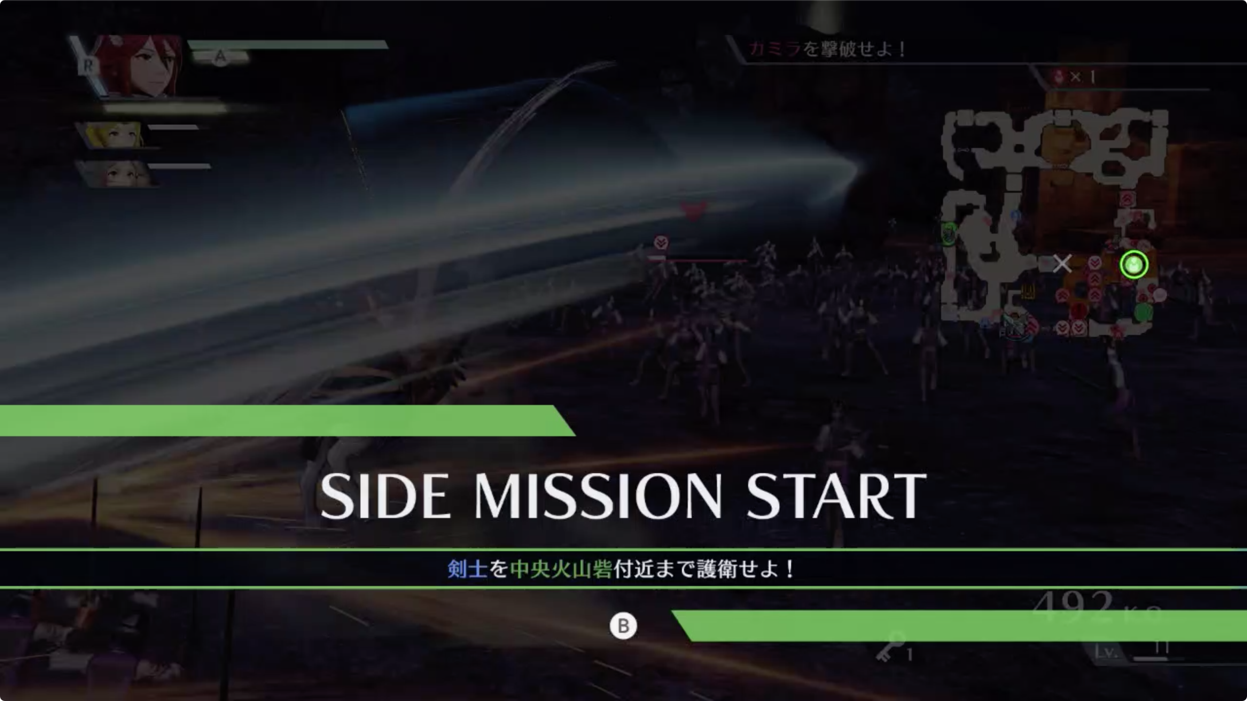 •일정시간 경과 후 사이드 미션 [검사를 중앙화산요새근처까지 호위하라!] 발생