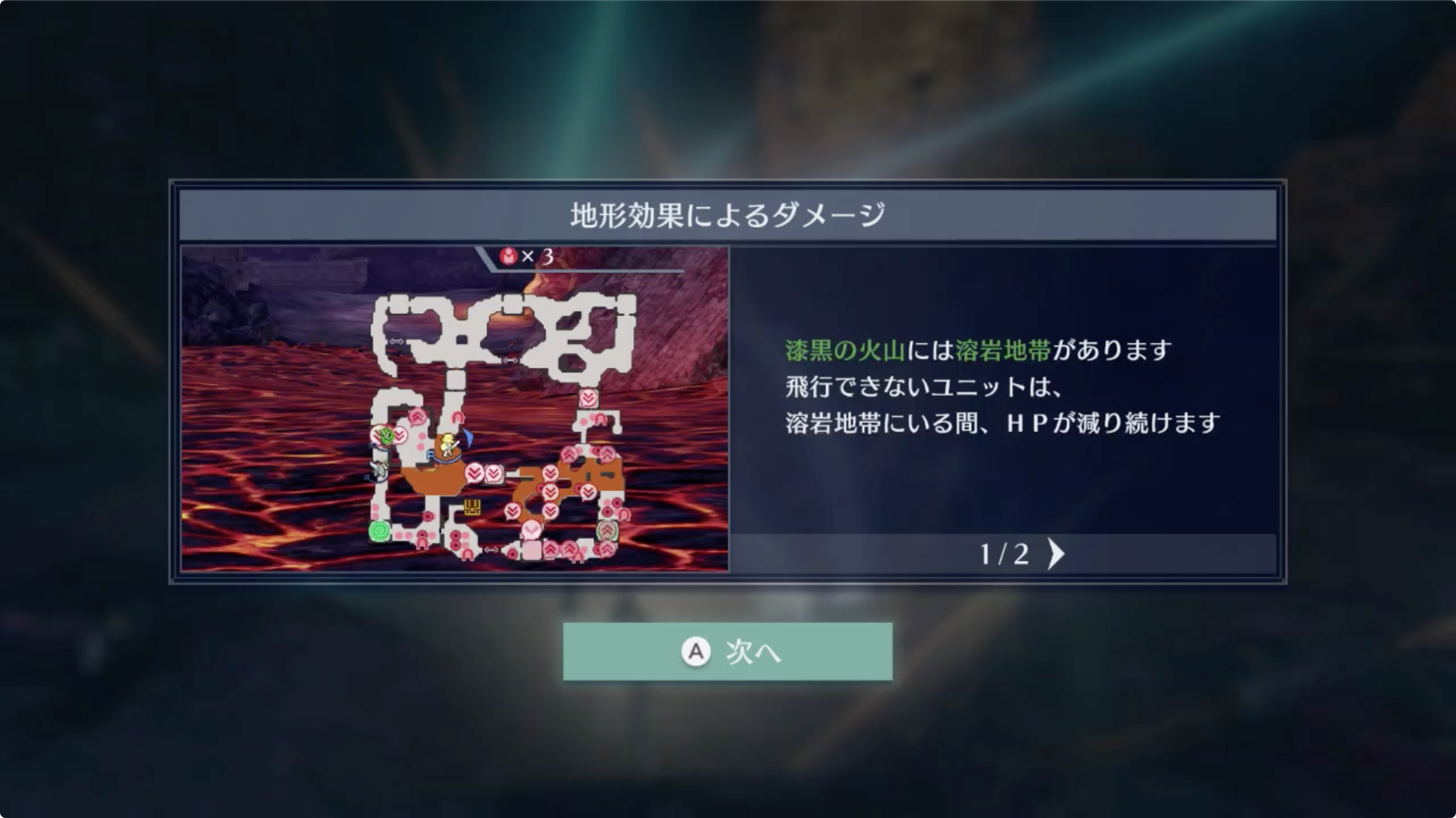 •아래쪽에 있는 사이드 미션 [검사를 중앙화산요새근처까지 호위하라!]도 마찬가지지만 빠른 이동과 특효무기를 가진 유닛 둘다 필요할경우 더블을 이용하는것도 방법이다. 티아모와 리즈를 더블상태로 한 후 이동은 티아모로, 비행타입의 적은 특효 무기를 가진 유닛으로 변경하여 상대하는것도 좋다. (꼭 이맵이 아니더라도...)