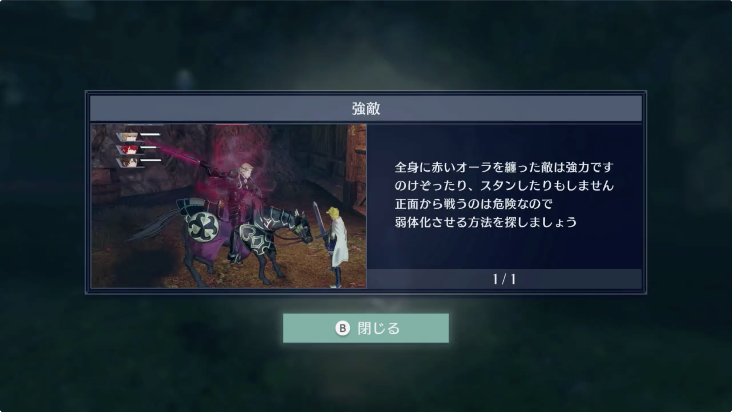 곧 이어 강적에 대한 튜토리얼도 나타나며, 최대한 마크스, 료마와는 전투를 피하면서 빠르게 진행합시다.