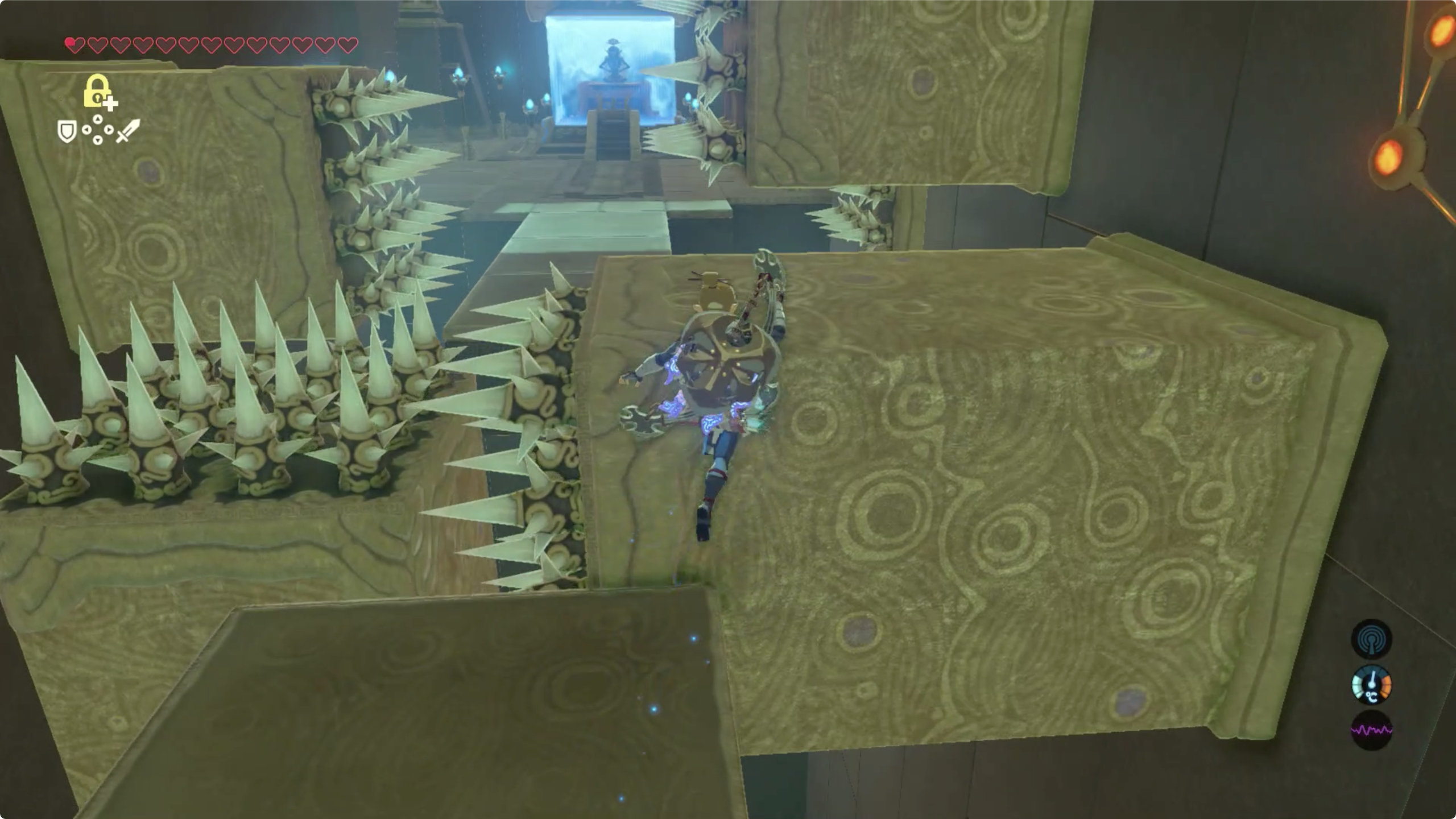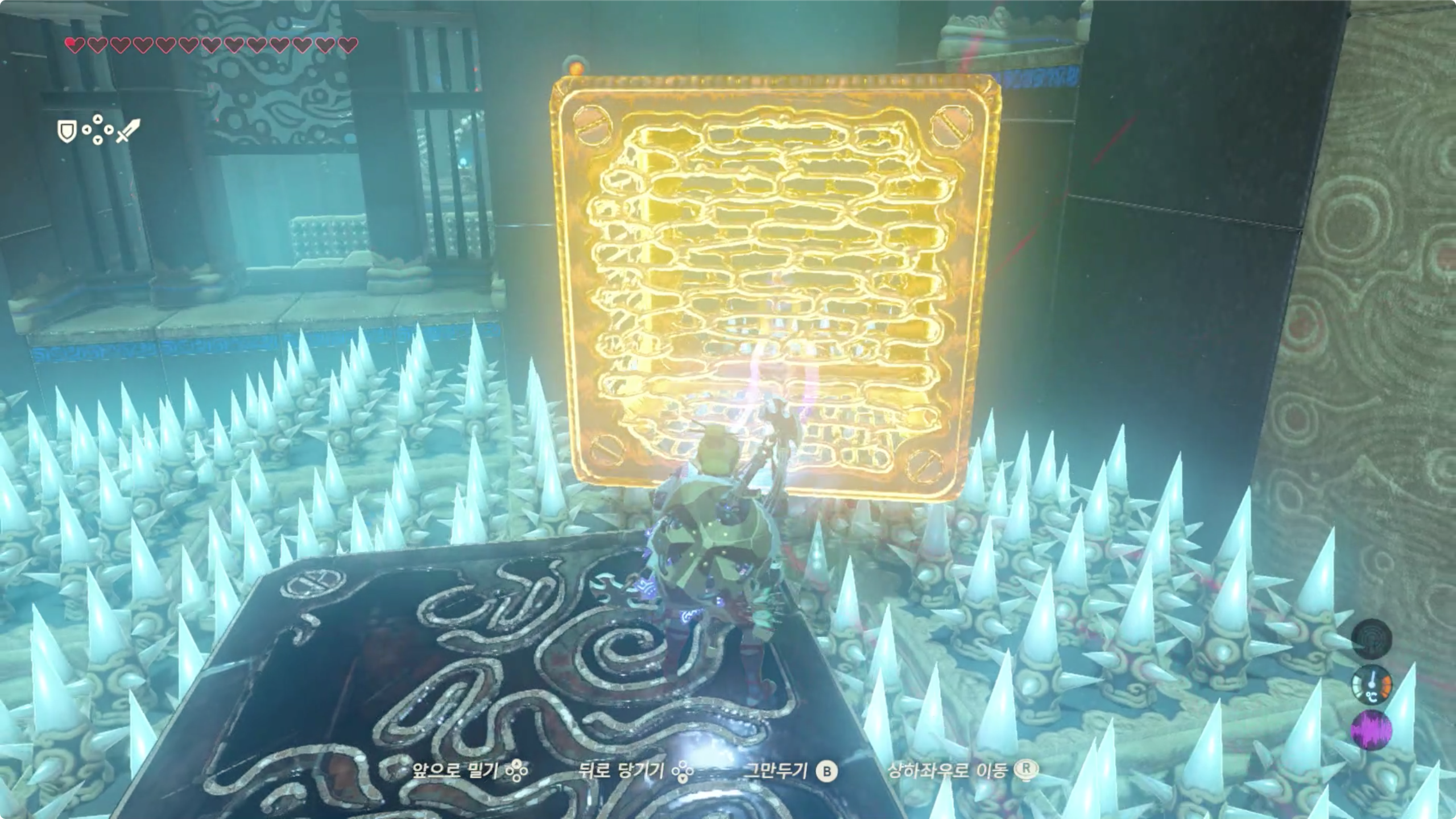 움직이는 벨트(?)에서 천천히 이동하며 타임 록이 회복되길 기다려주고, 중간에 있는 벨트를 멈춰 준 후 진행합니다.