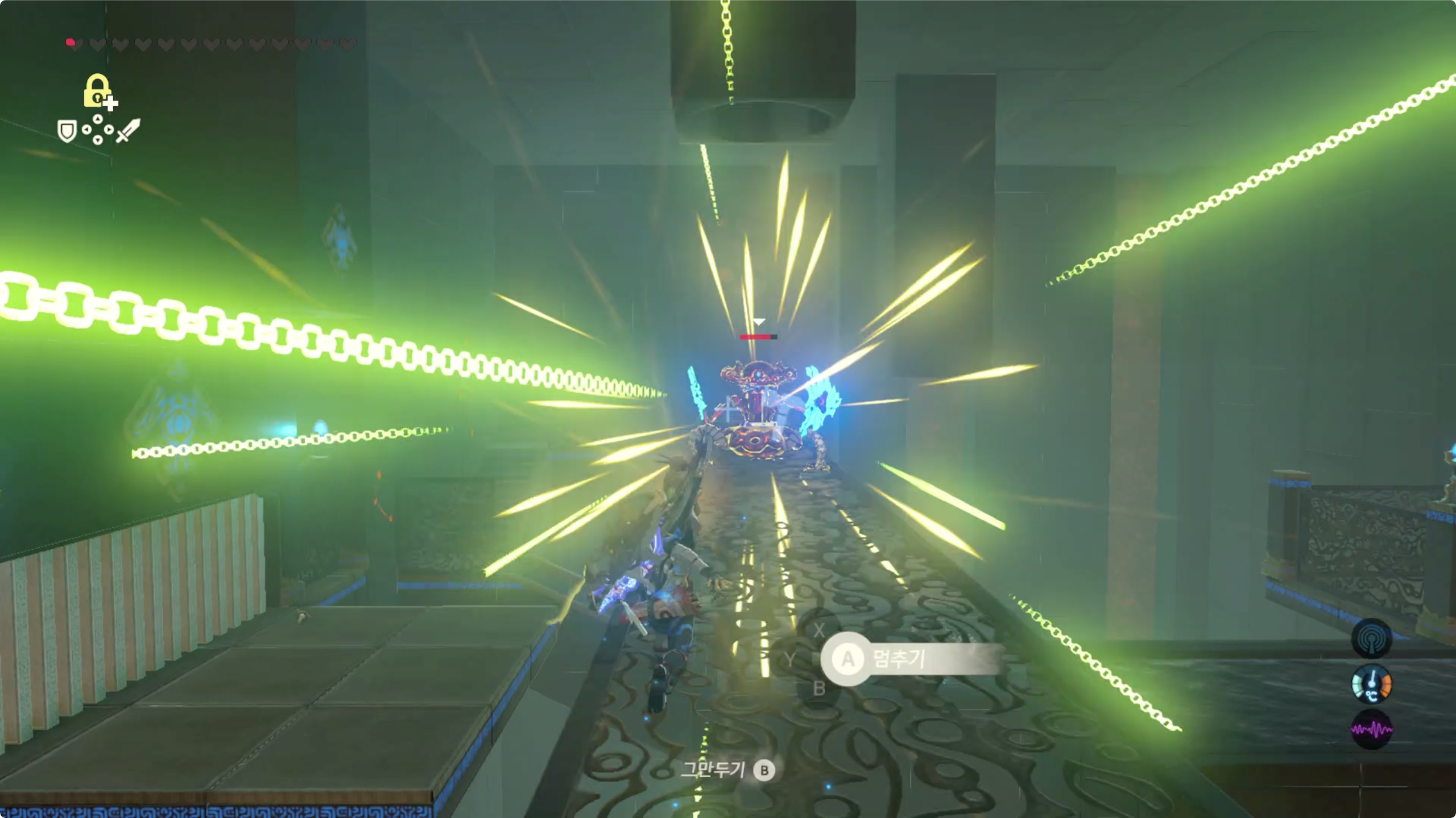 숨어서 화살로 가디언을 잡아도 좋고 다시 타임 록을 이용해 하나씩 정리해도 좋다.