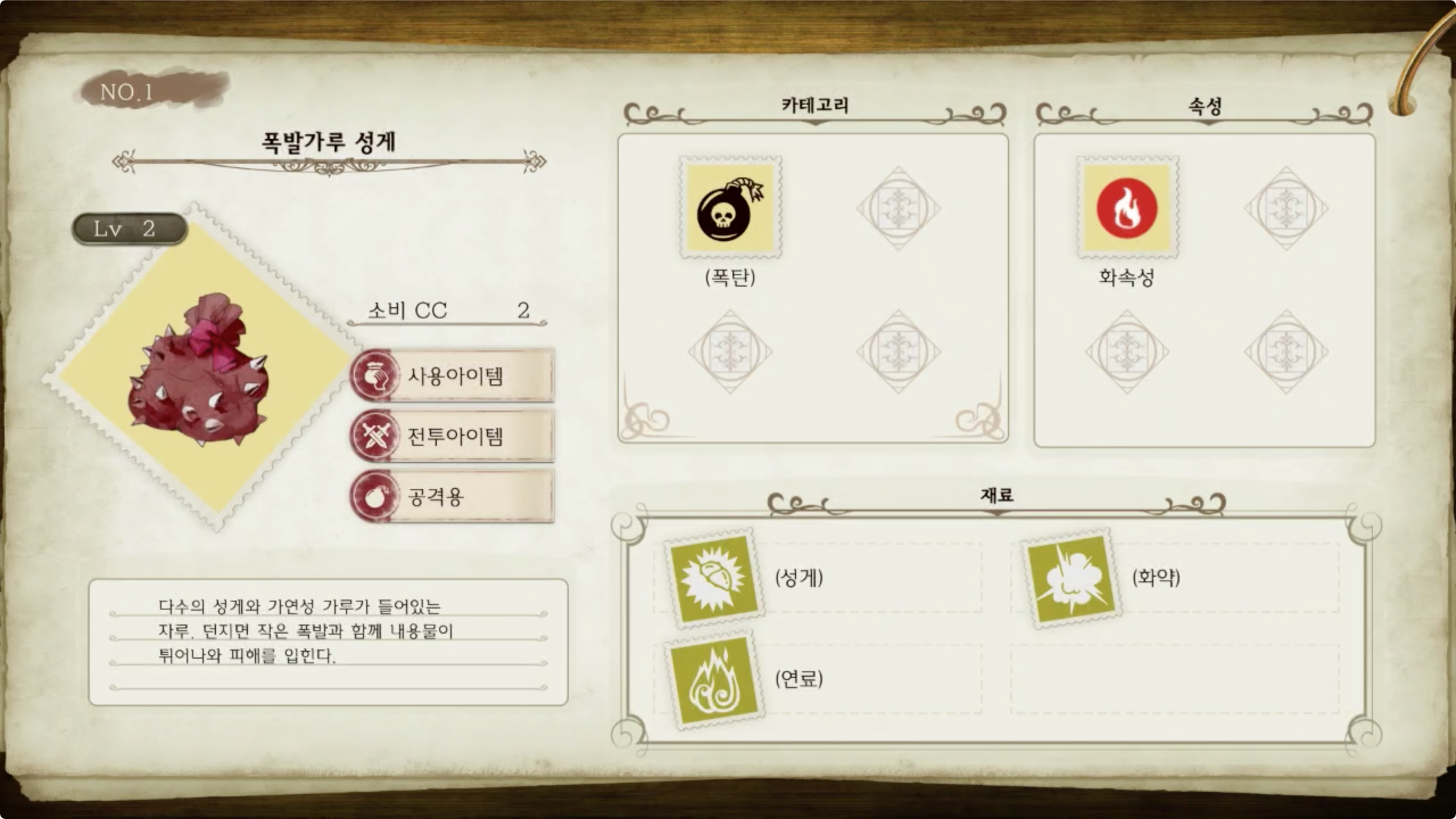 | 라이자의 아틀리에 - 아이템 도감 NO.003 크래프트 (0) | 2020.02.06 |