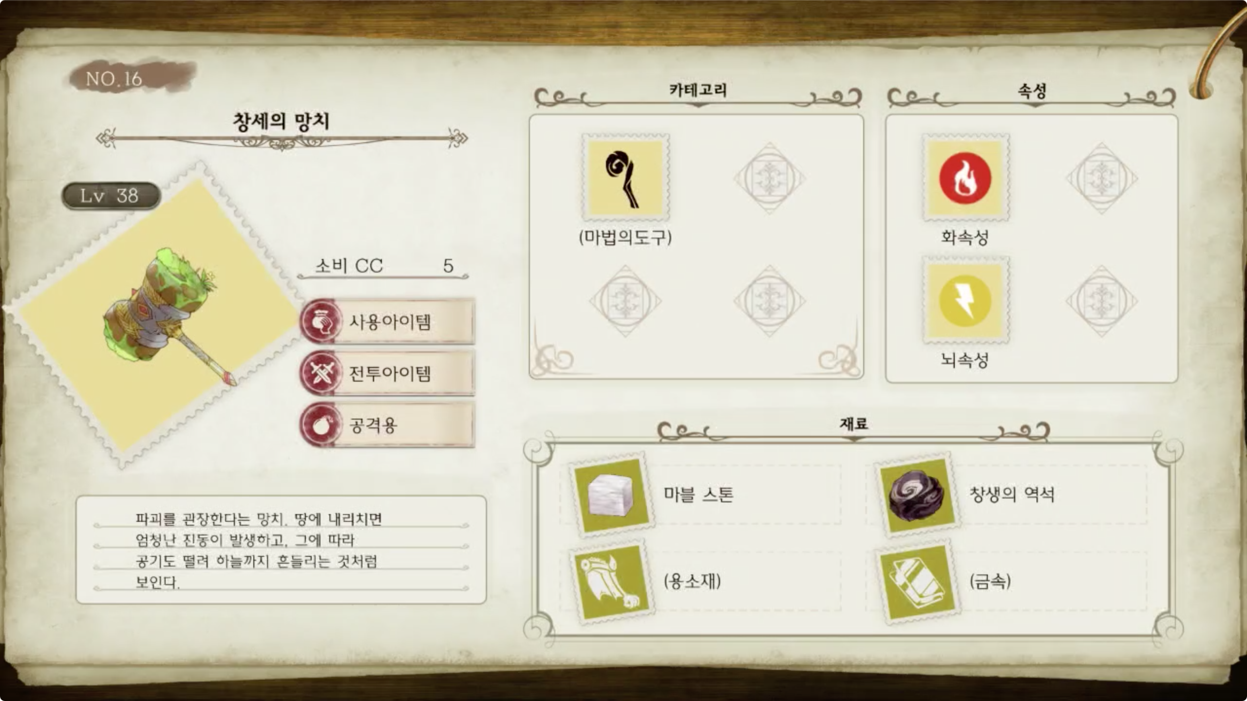 라이자의 아틀리에 - 아이템 도감 NO.016 창세의 망치