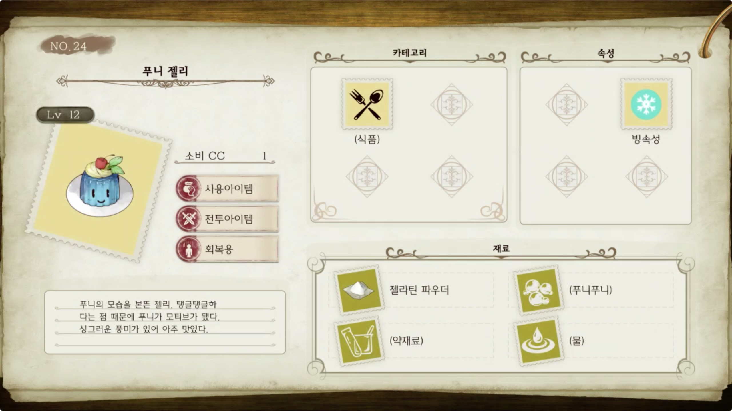 라이자의 아틀리에 - 아이템 도감 NO.024 푸니 젤리