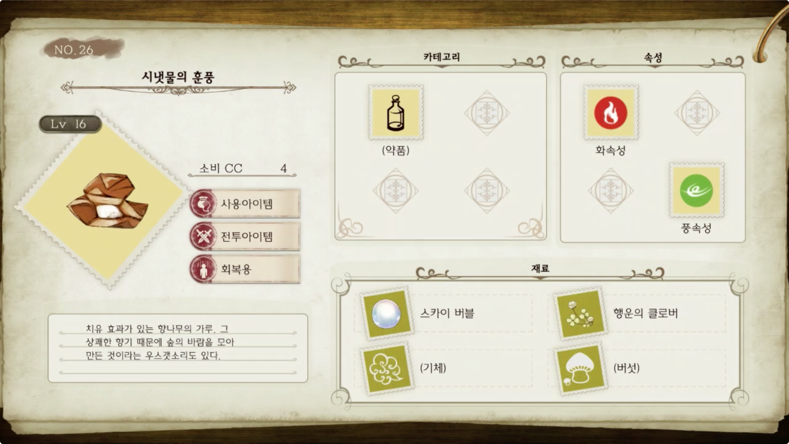 라이자의 아틀리에 - 아이템 도감 NO.026 시냇물의 훈풍