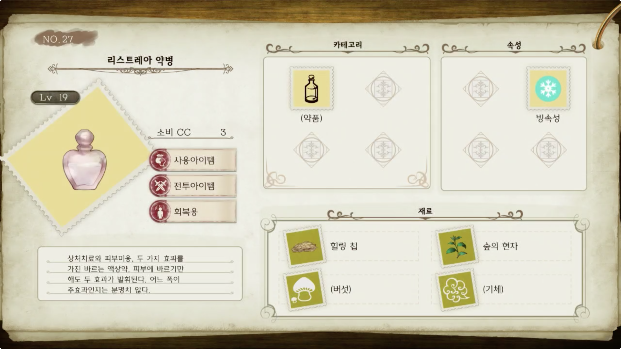 라이자의 아틀리에 - 아이템 도감 NO.027 리스트레아 약병