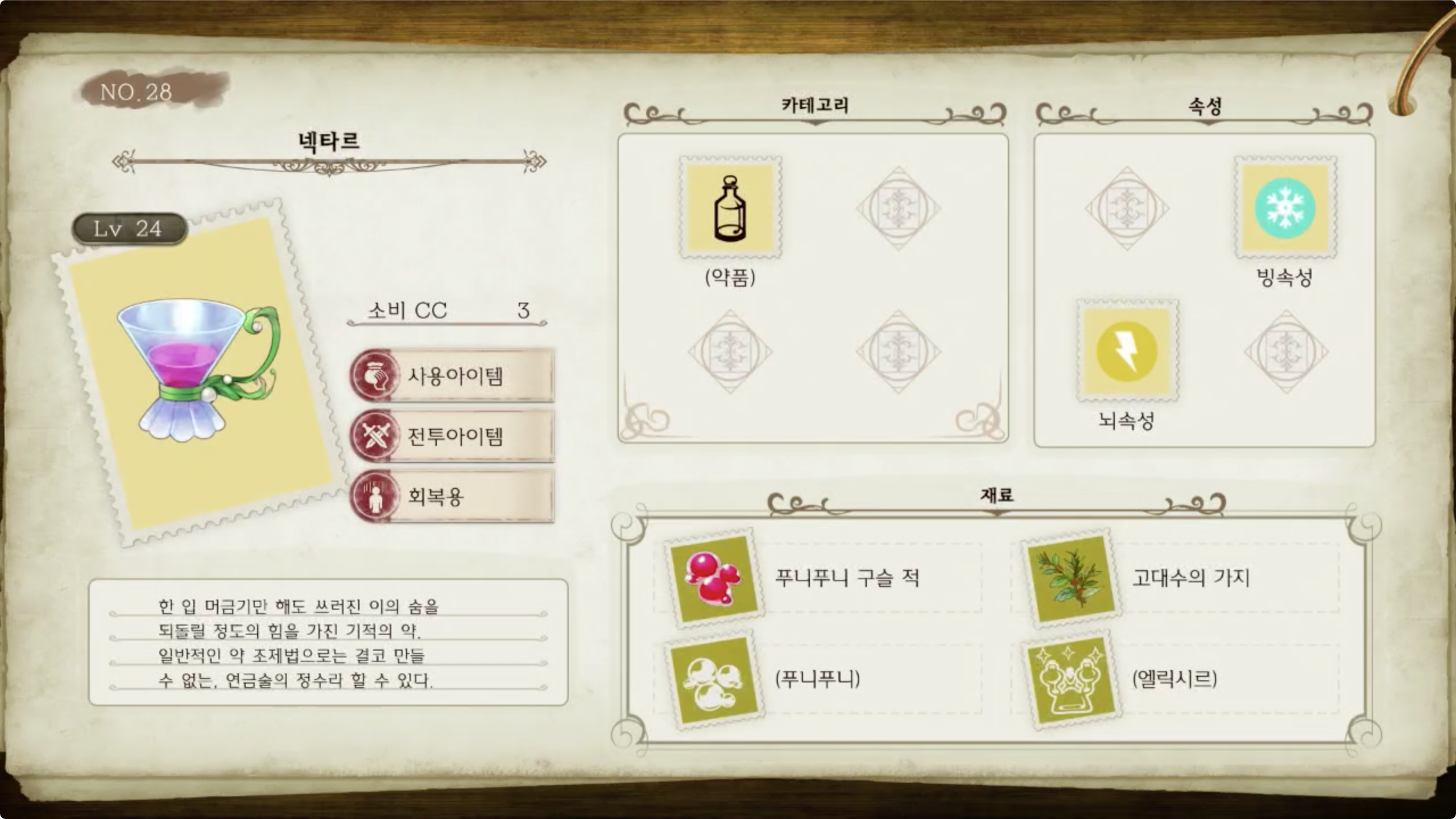 라이자의 아틀리에 - 아이템 도감 NO.028 넥타르