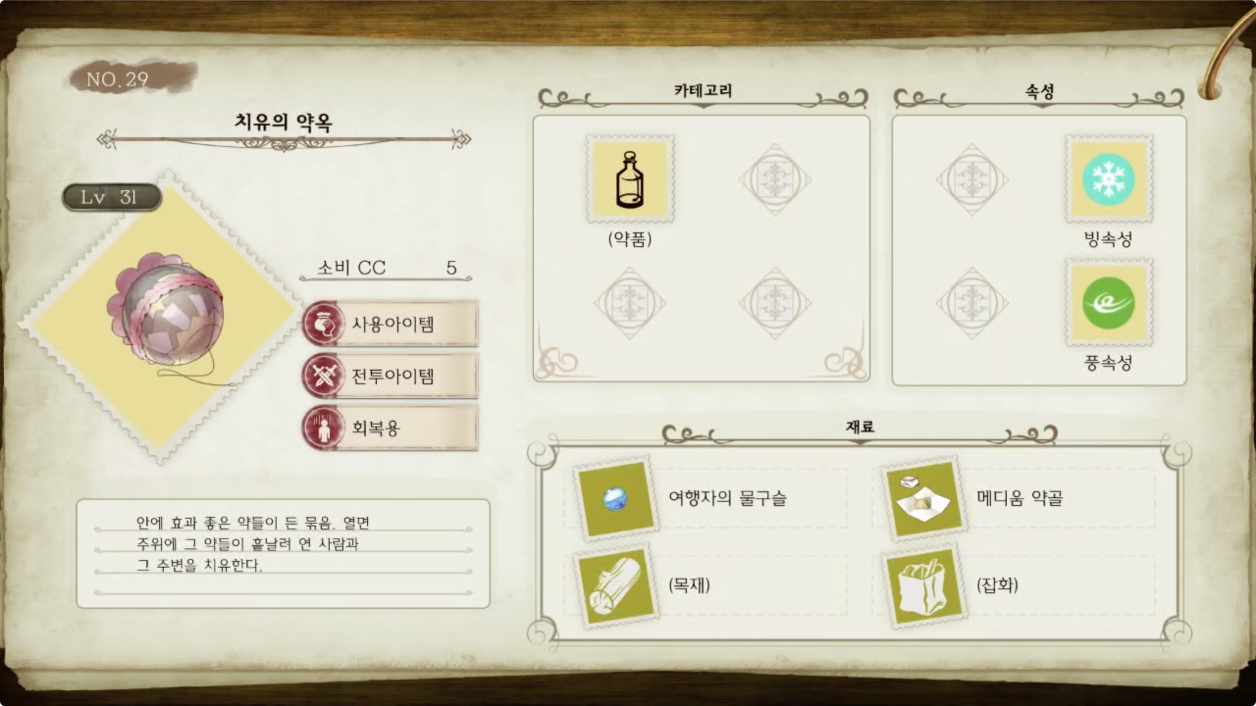 라이자의 아틀리에 - 아이템 도감 NO.029 치유의 약옥
