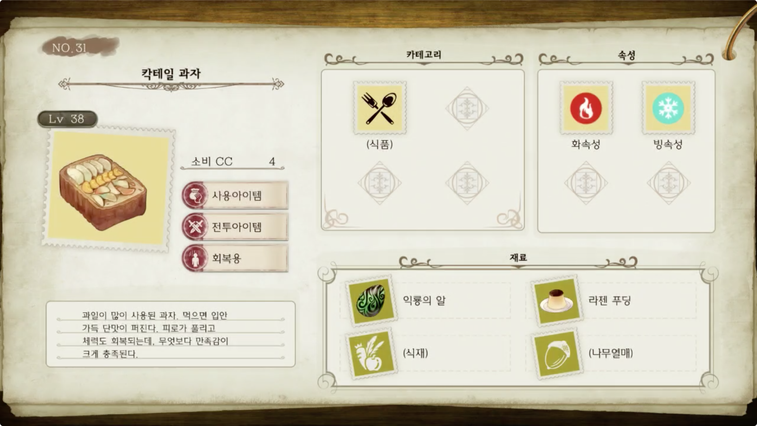 라이자의 아틀리에 - 아이템 도감 NO.031 칵테일 과자