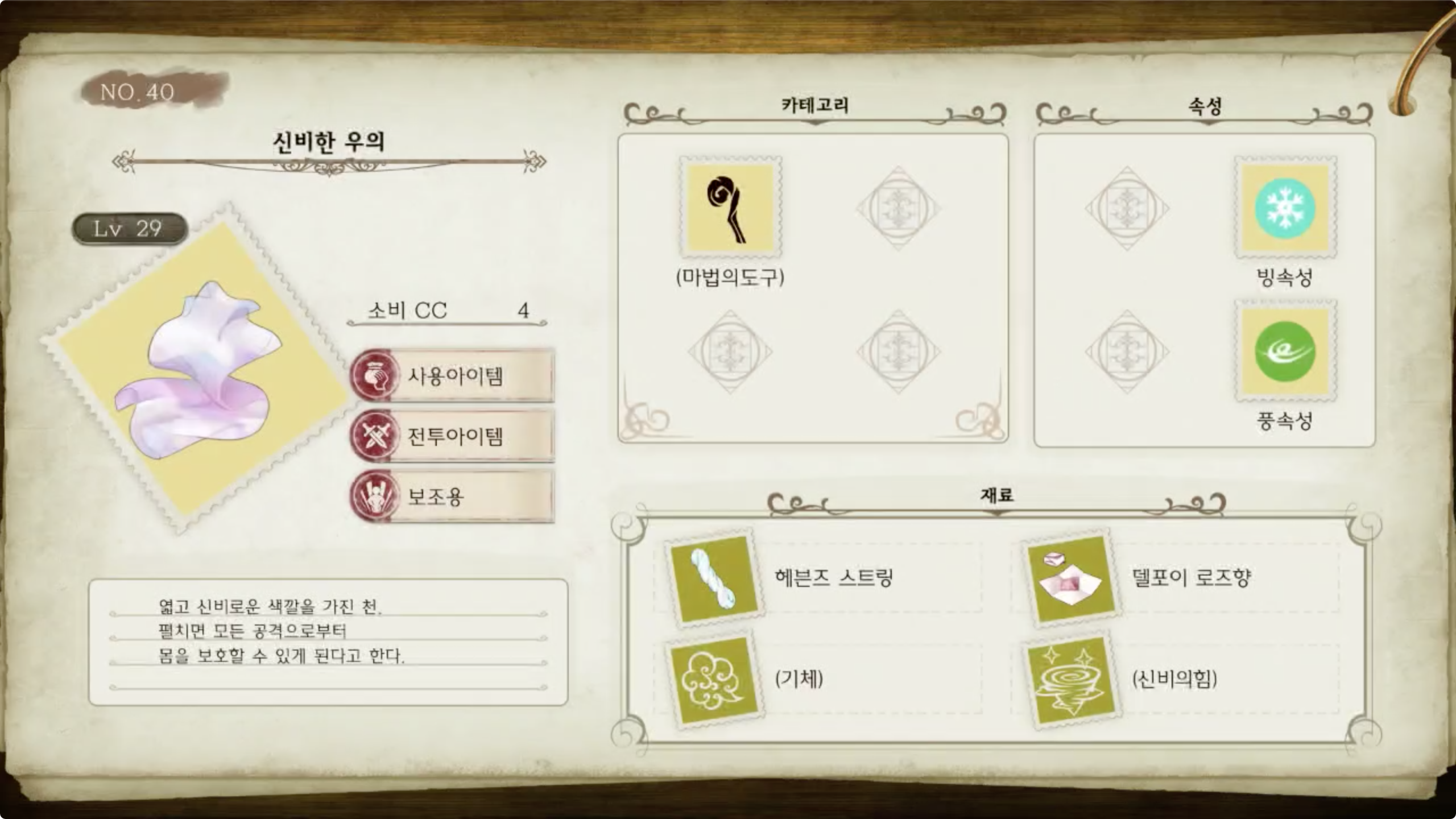 라이자의 아틀리에 - 아이템 도감 NO.040 신비한 우의