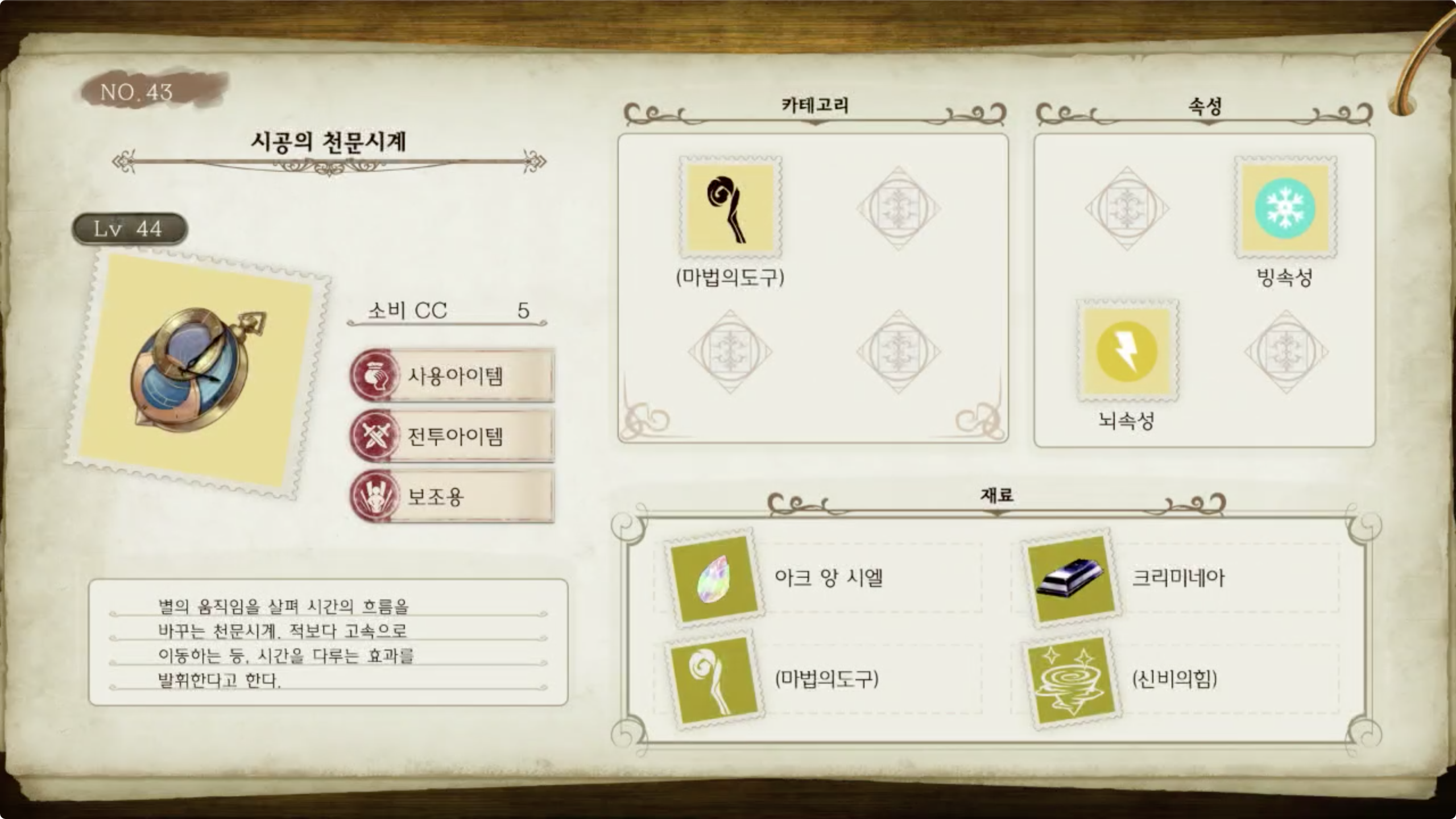 라이자의 아틀리에 - 아이템 도감 NO.043 시공의 천문시계