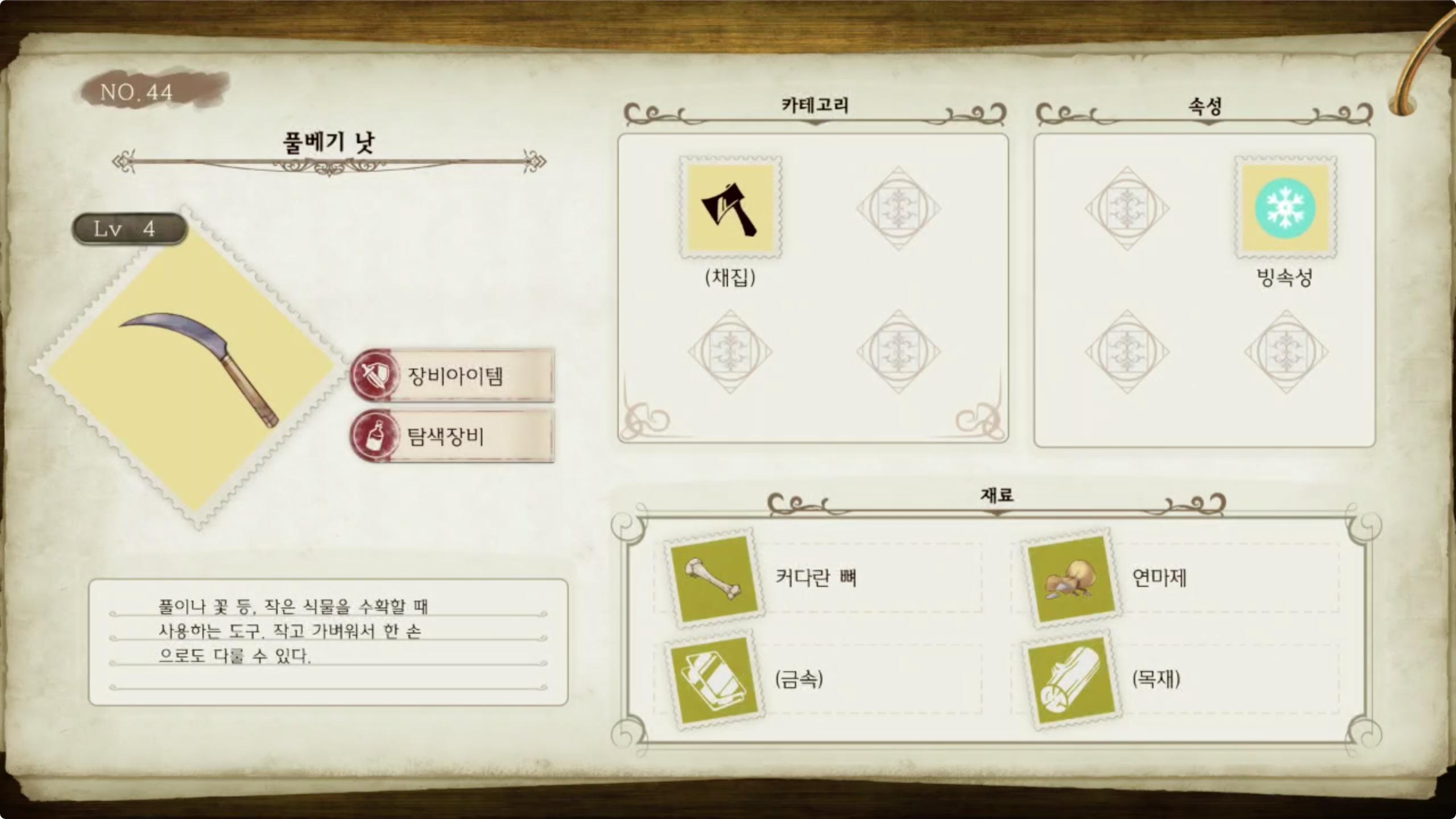 라이자의 아틀리에 - 아이템 도감 NO.044 풀베기 낫