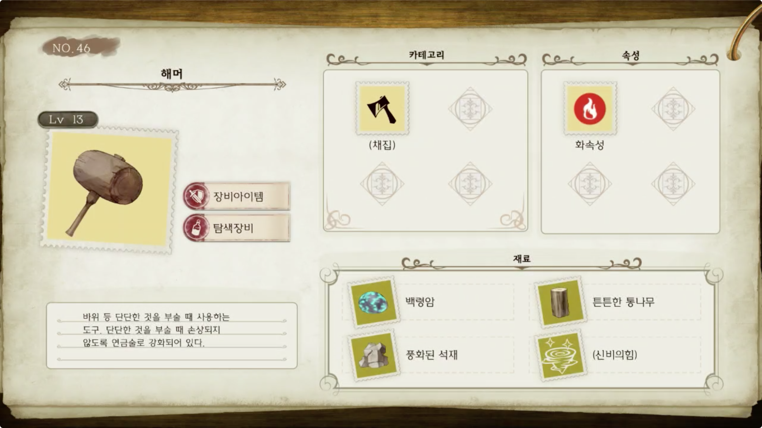 라이자의 아틀리에 - 아이템 도감 NO.046 해머