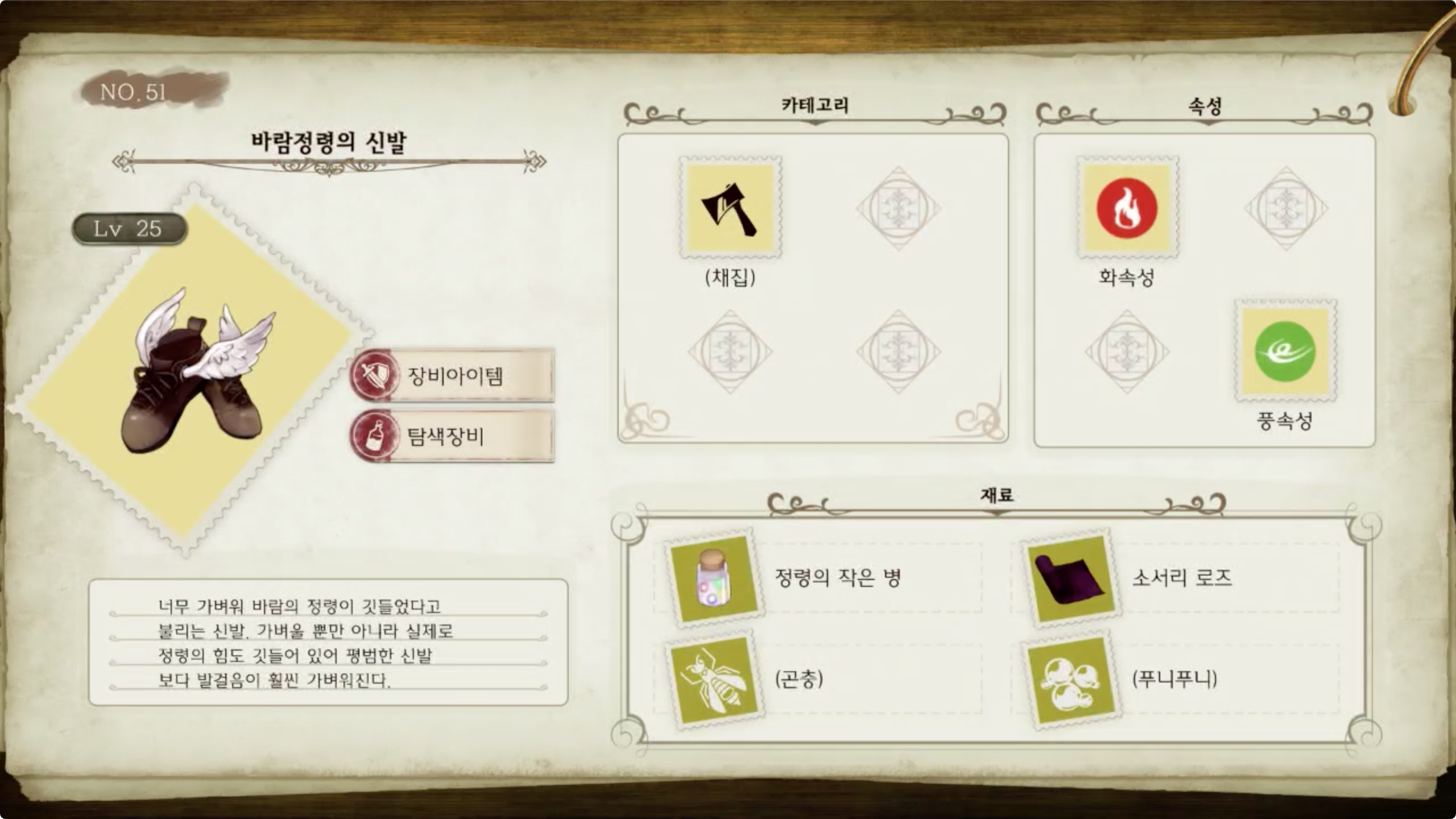 라이자의 아틀리에 - 아이템 도감 NO.051 바람정령의 신발