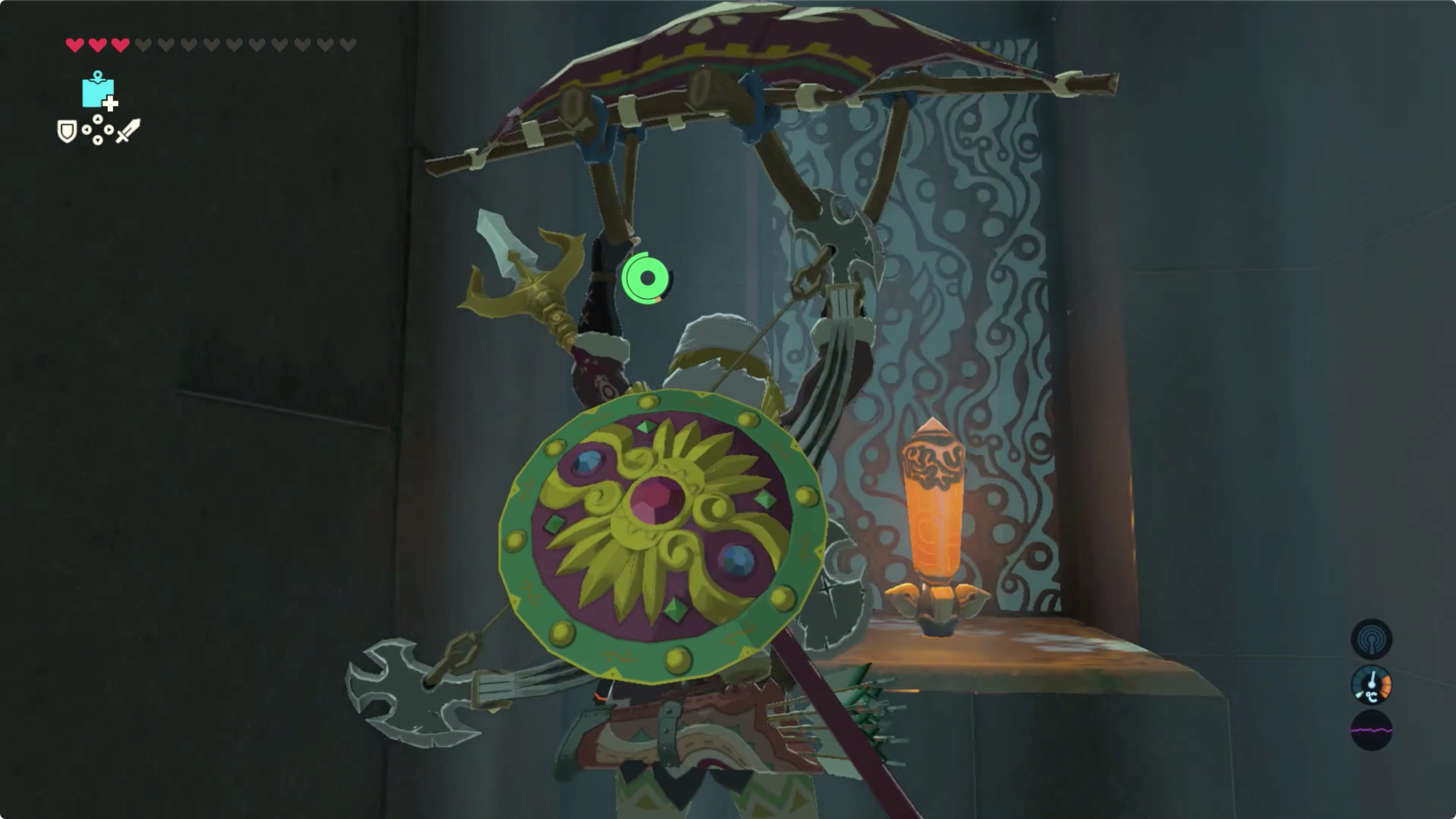 사당에 진입하면 눈앞에 스위치가 있는데 화살도 아까우니 리모컨 폭탄으로 작동시킵시다.