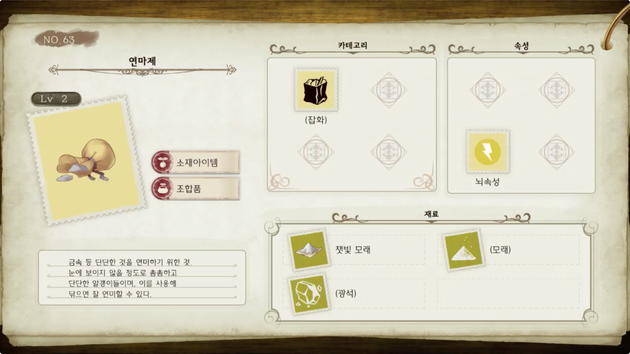 라이자의 아틀리에 - 아이템 도감 NO.063 연마제