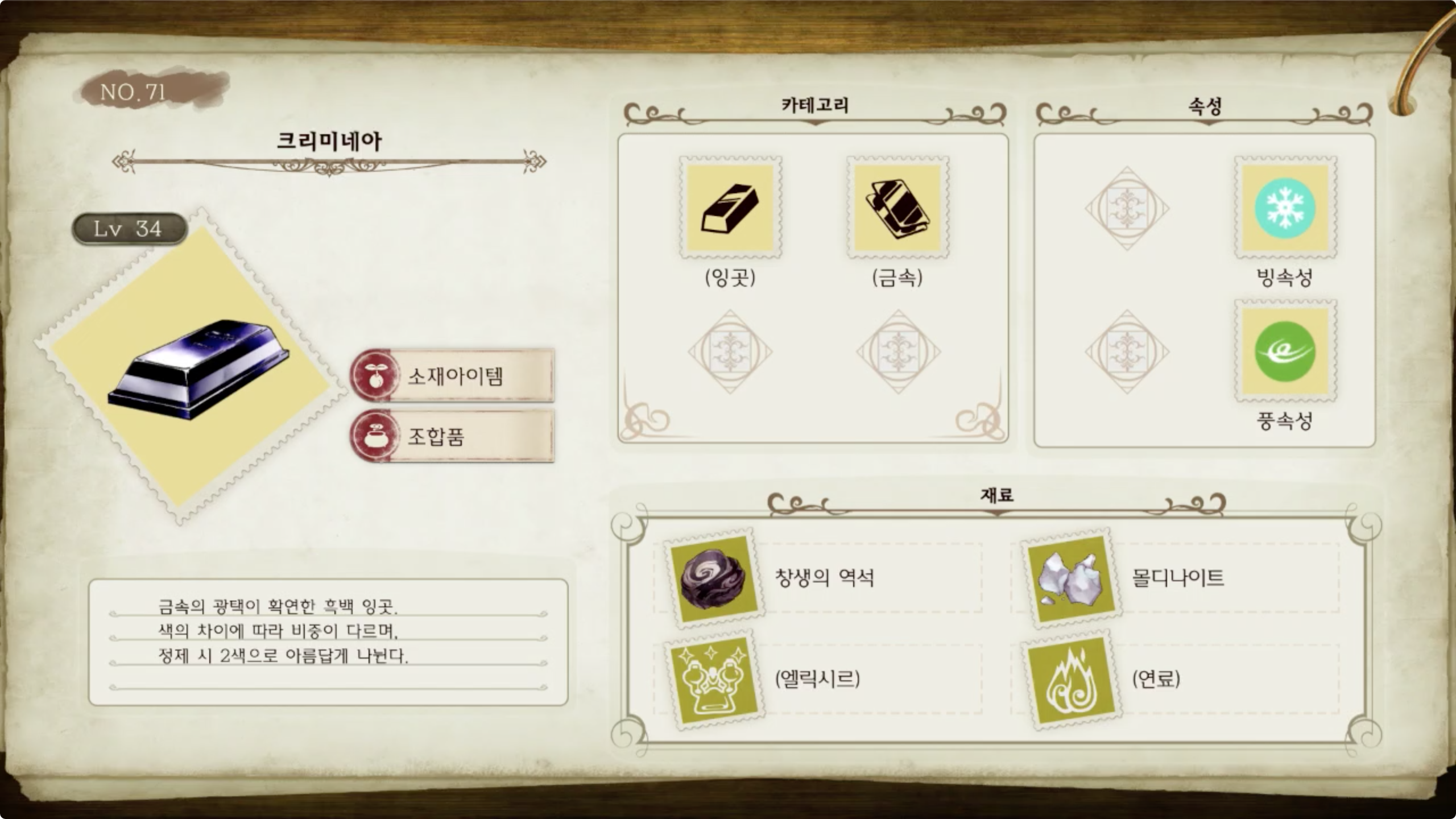 라이자의 아틀리에 - 아이템 도감 NO.071 크리미네아