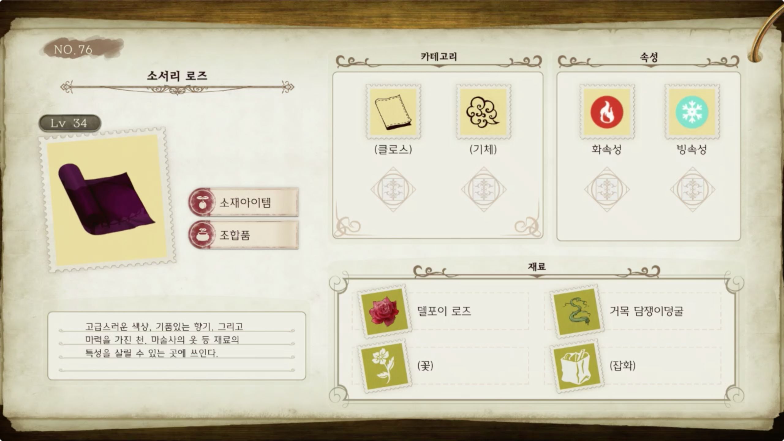 라이자의 아틀리에 - 아이템 도감 NO.076 소서리 로즈