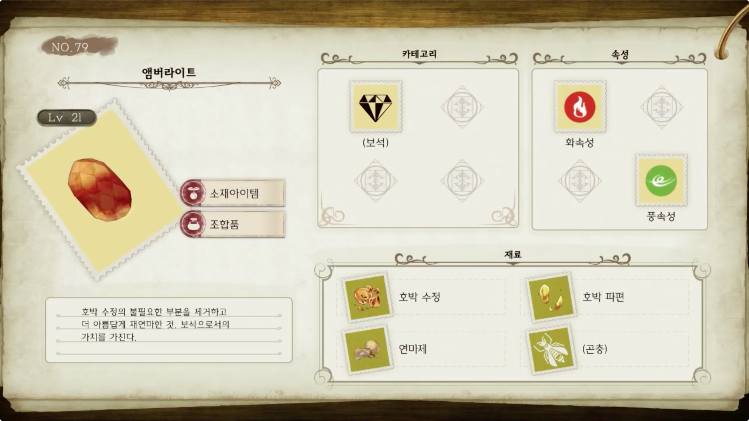 라이자의 아틀리에 - 아이템 도감 NO.079 앰버라이트