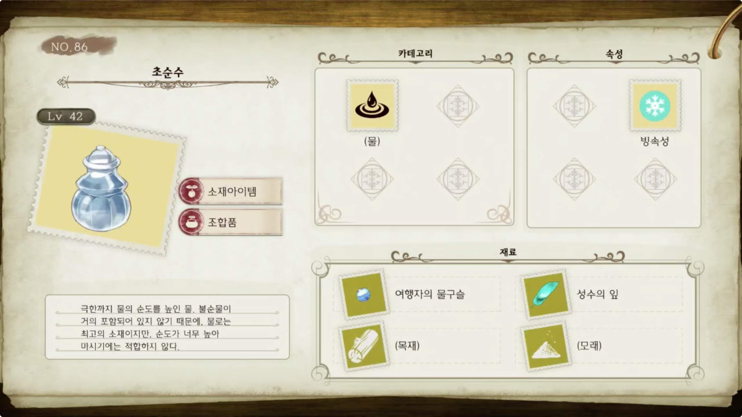 라이자의 아틀리에 - 아이템 도감 NO.086 초순수