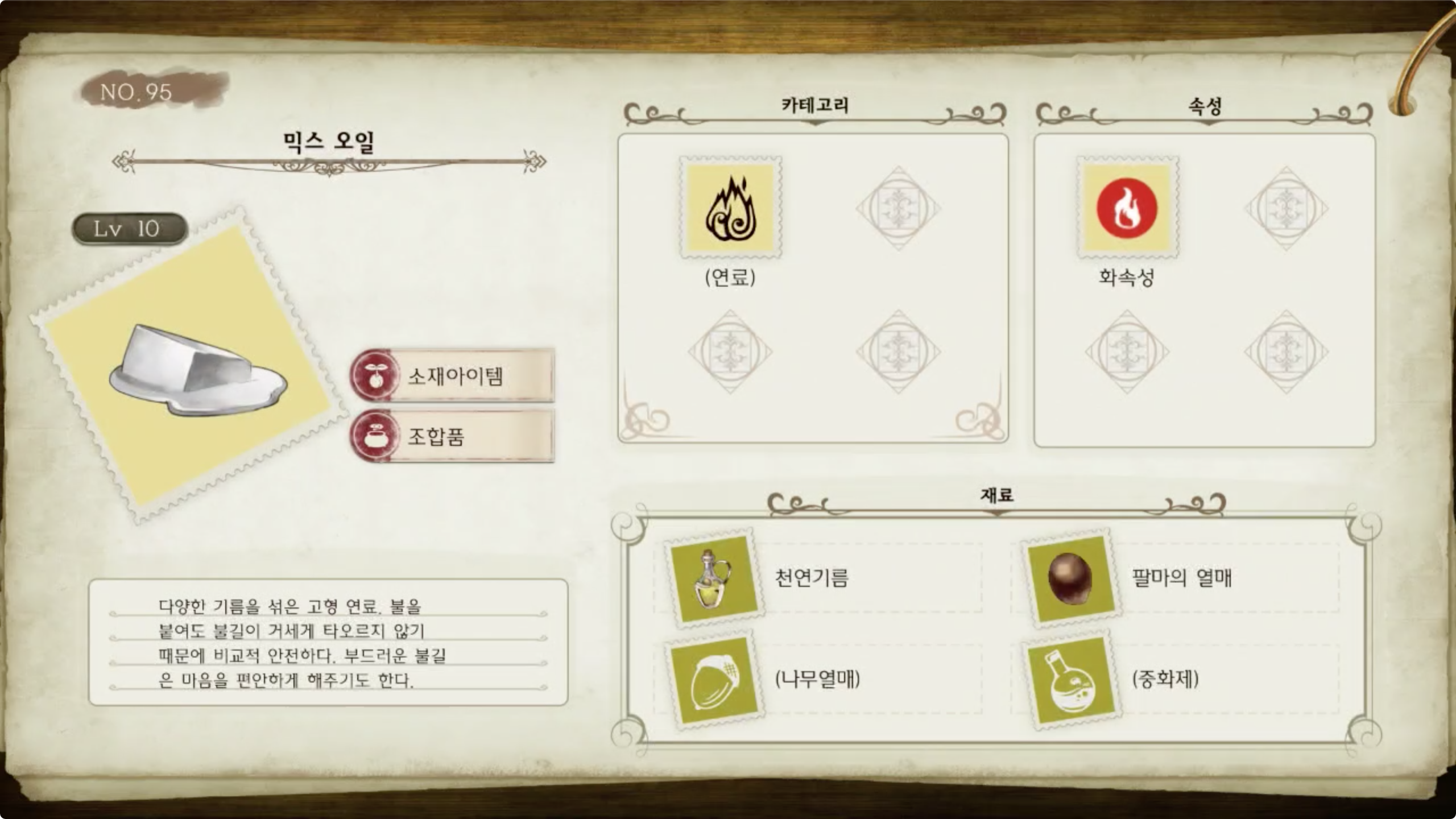 라이자의 아틀리에 - 아이템 도감 NO.095 믹스 오일