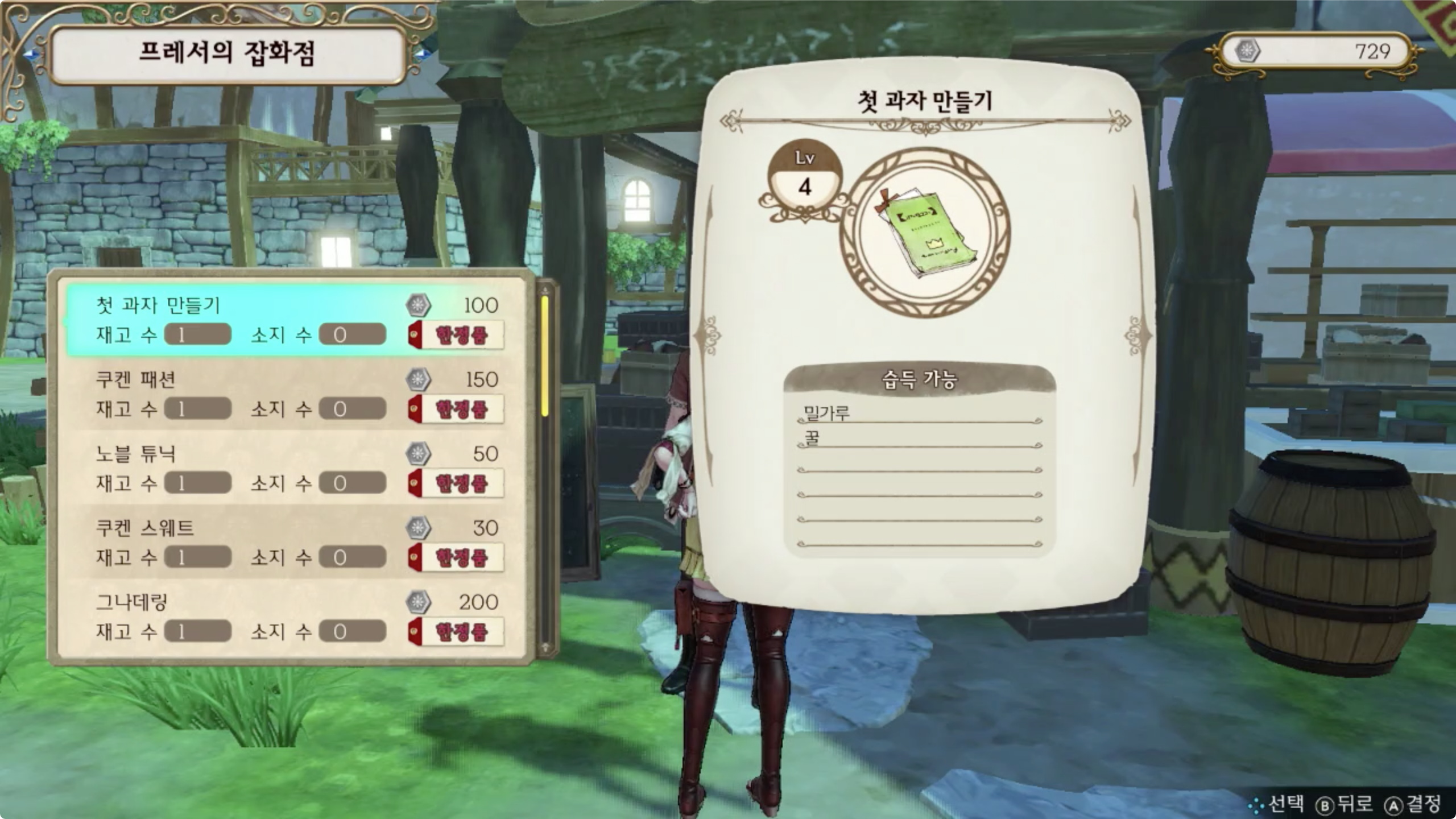 쿠켄 섬 > 보덴 지구의 프레서의 잡화점에서 「첫 과자 만들기」를 구매해서 획득