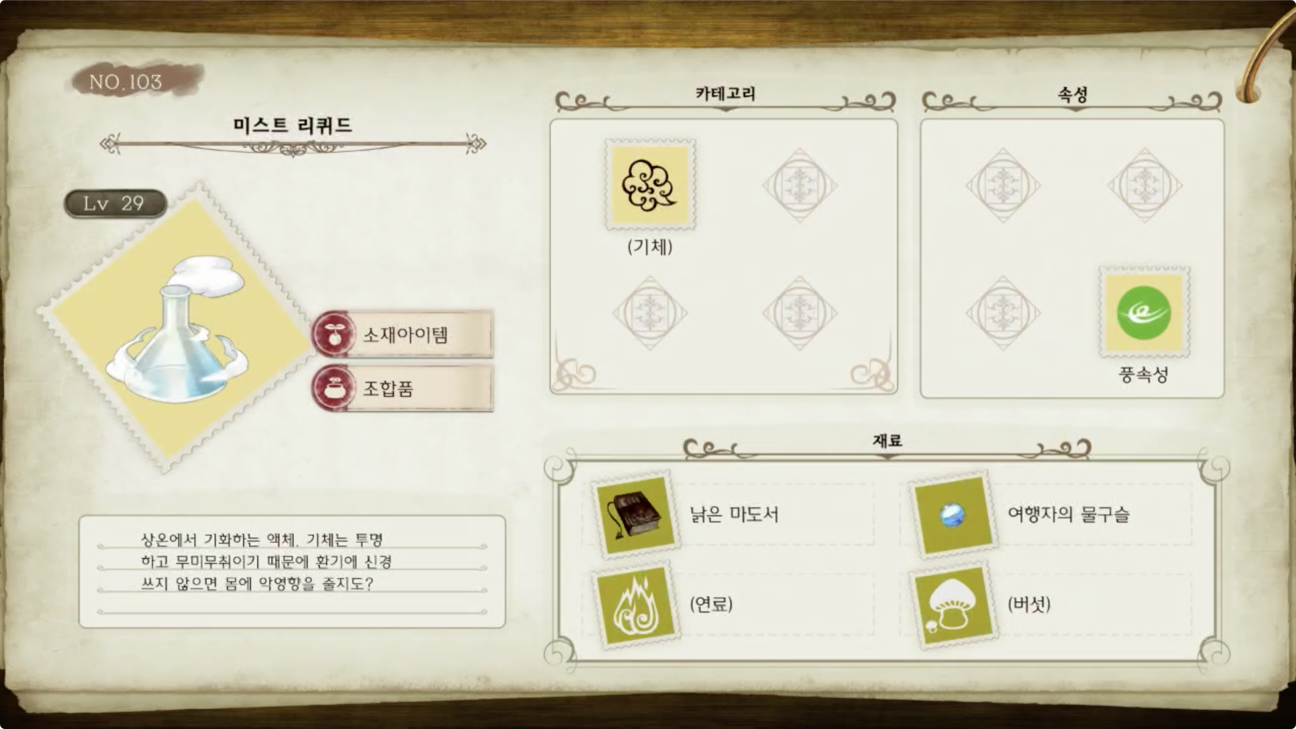라이자의 아틀리에 - 아이템 도감 NO.103 미스트 리퀴드