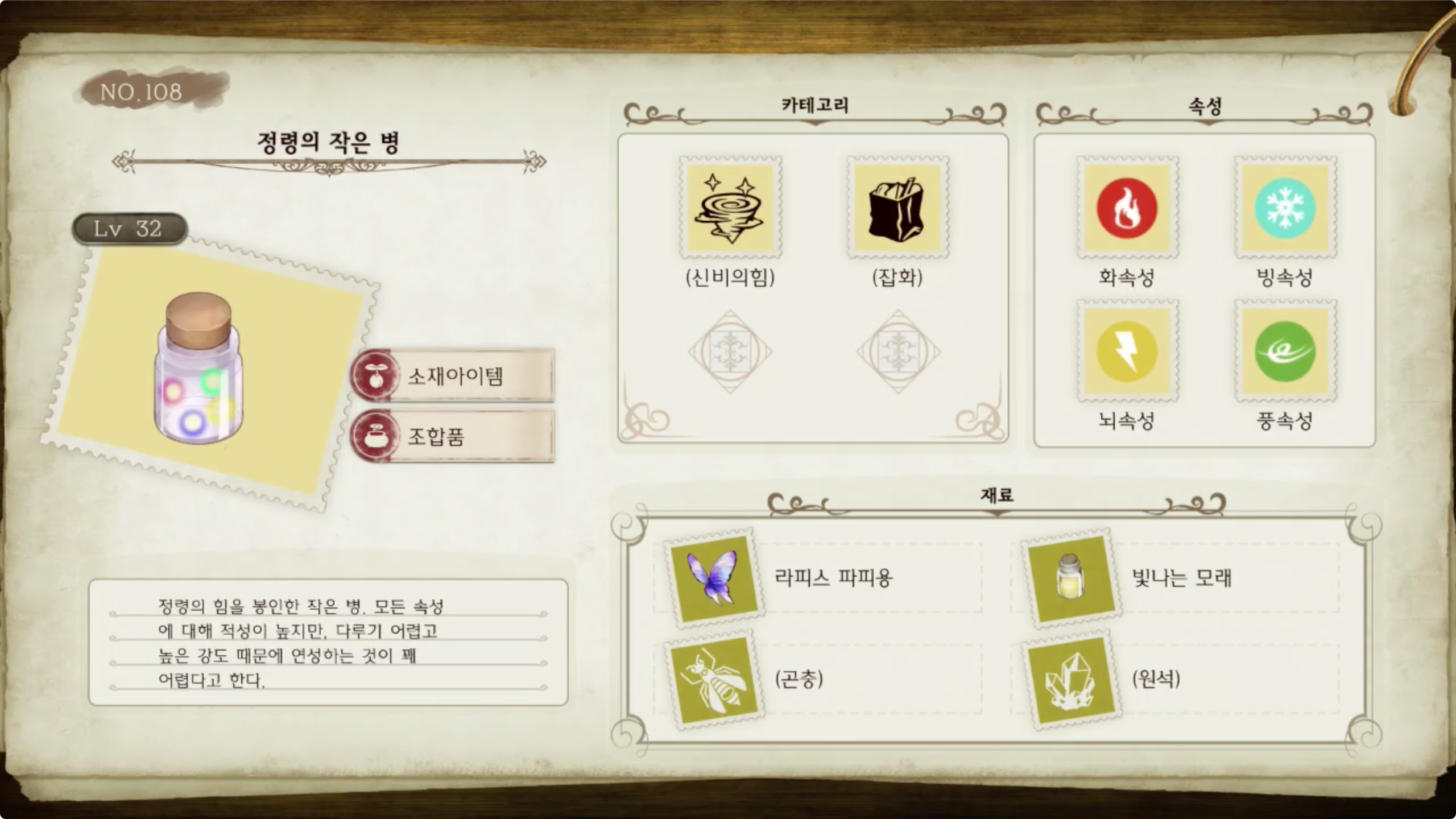 라이자의 아틀리에 - 아이템 도감 NO.108 정령의 작은 병