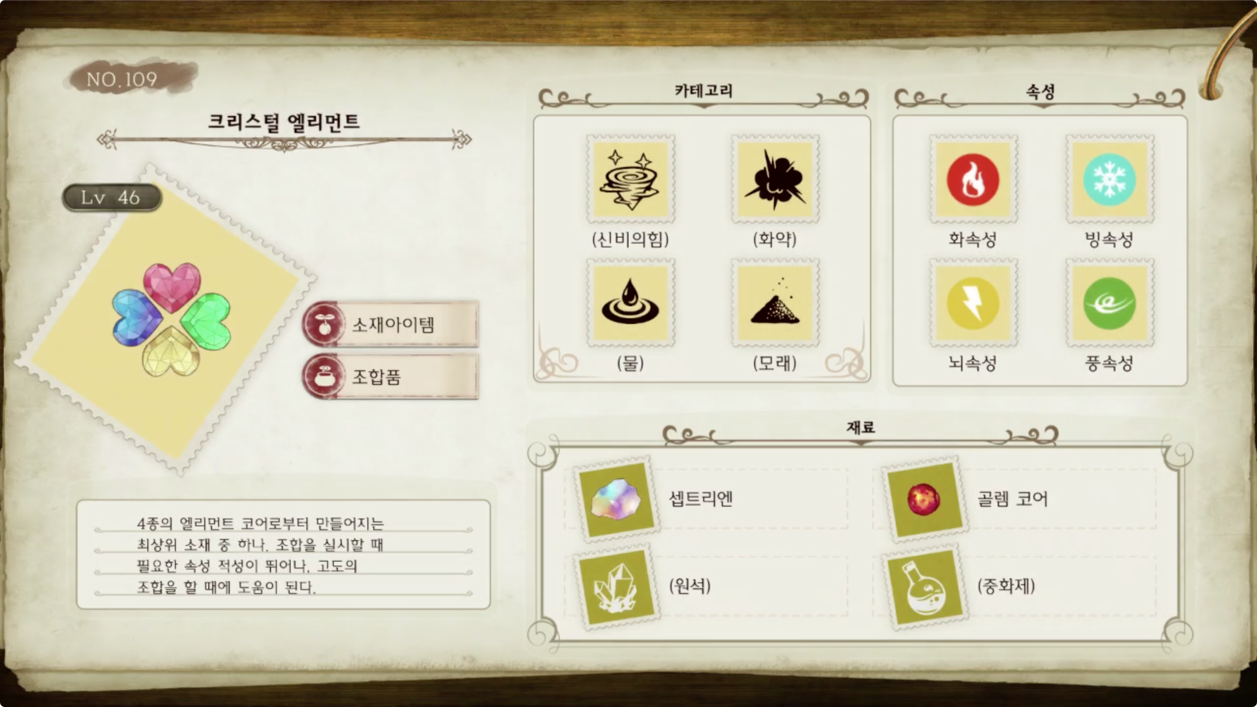 라이자의 아틀리에 - 아이템 도감 NO.109 크리스털 엘리먼트