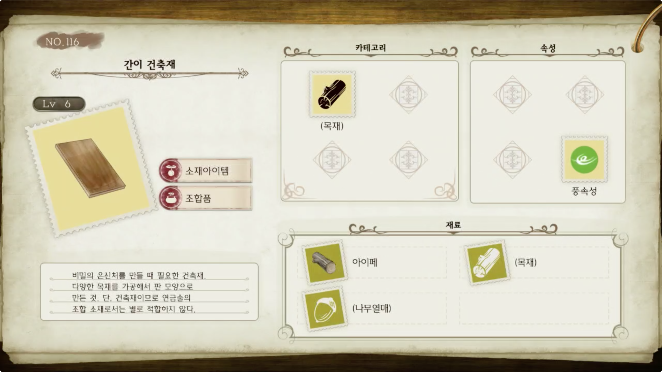 라이자의 아틀리에 - 아이템 도감 NO.116 간이 건축재