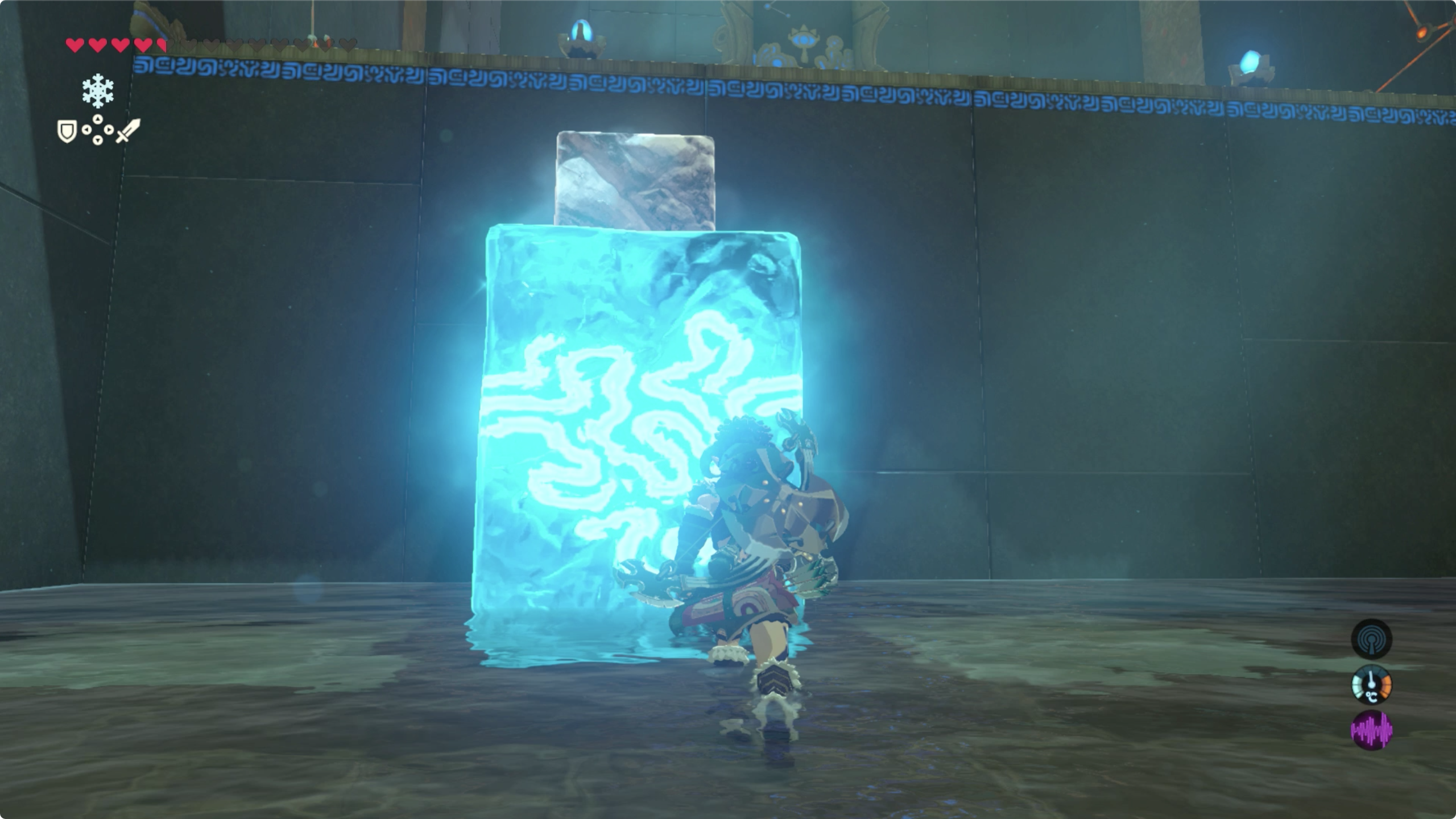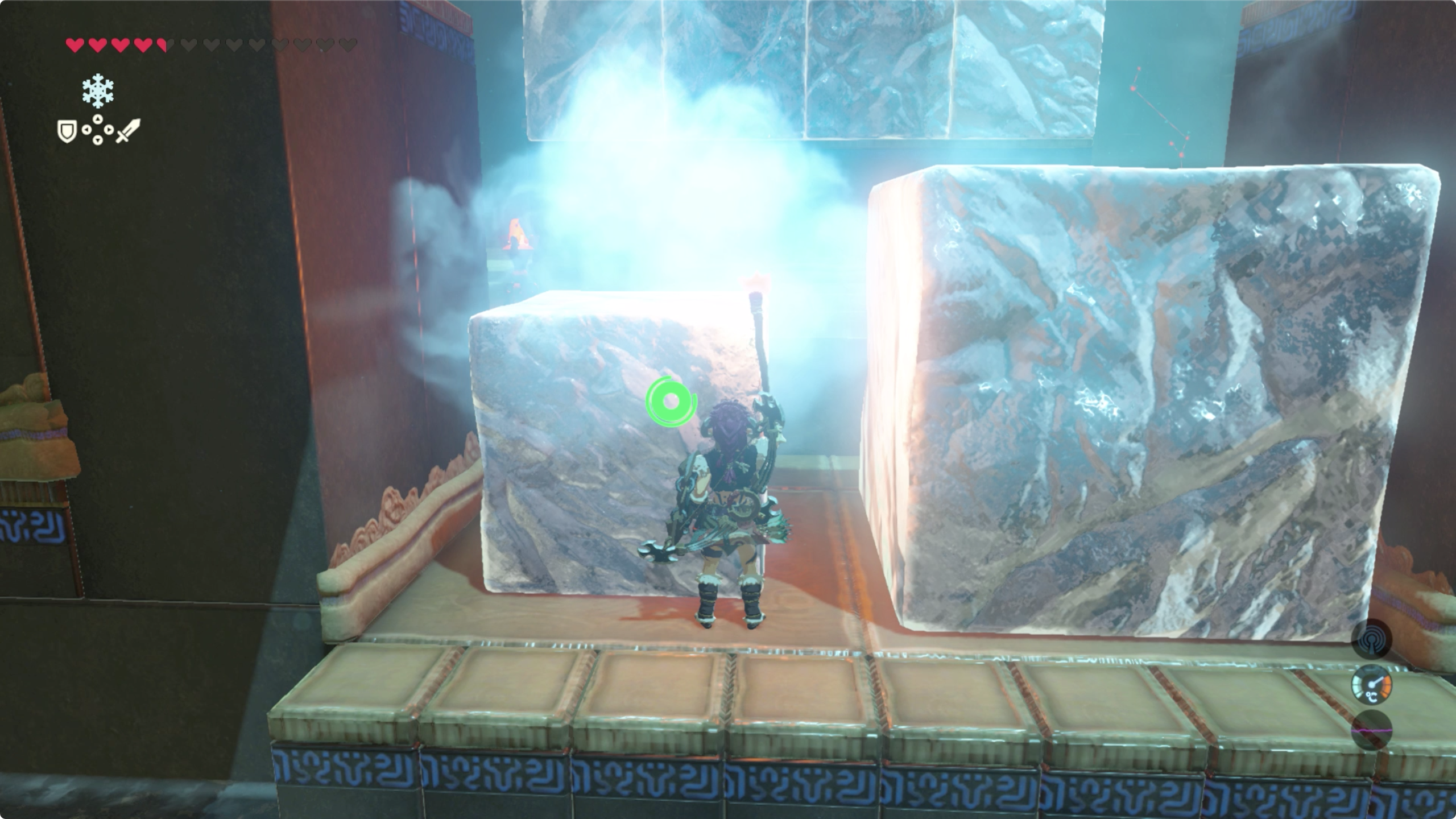 스위치를 눌러 나오는 얼음을 어느정도 녹여 발판삼아 위쪽에 얼음도 녹여줍시다.