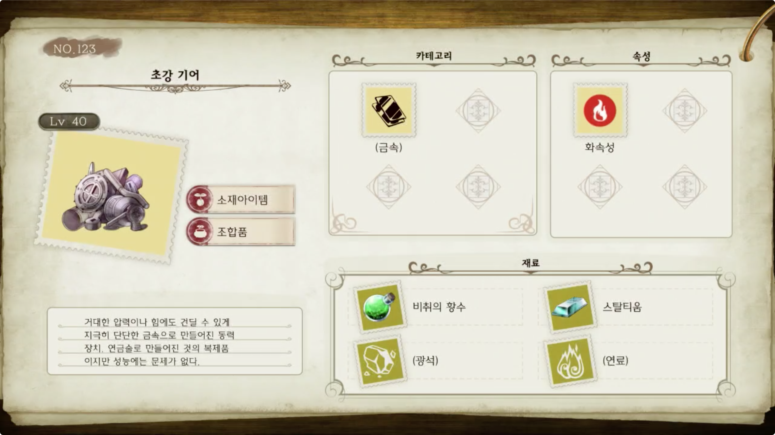 라이자의 아틀리에 - 아이템 도감 NO.123 초강 기어