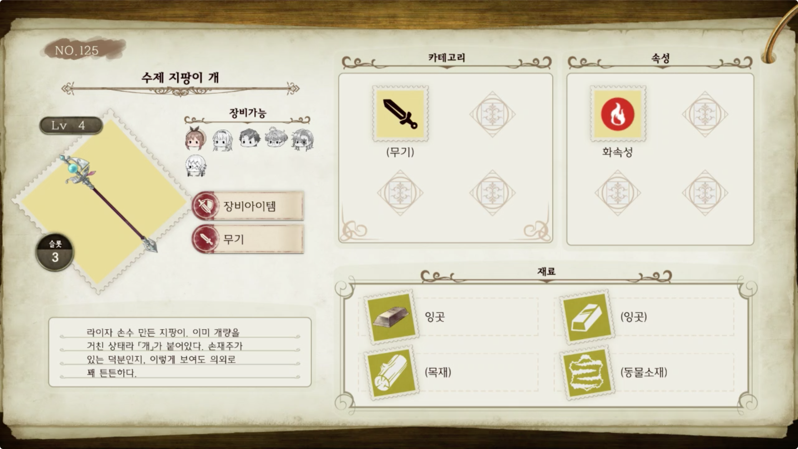 라이자의 아틀리에 - 아이템 도감 NO.125 수제 지팡이 개