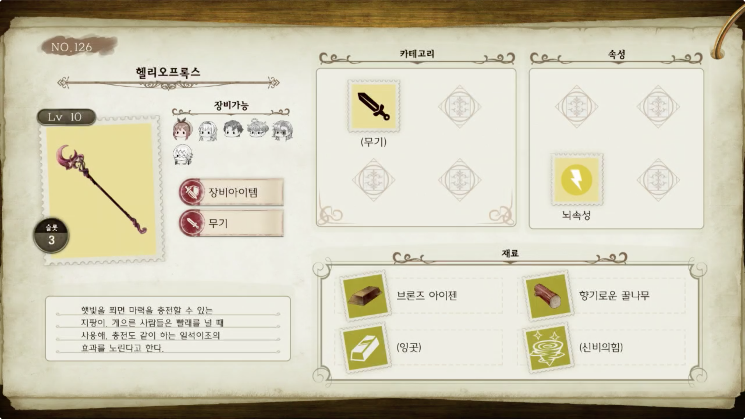 라이자의 아틀리에 - 아이템 도감 NO.126 헬리오프록스
