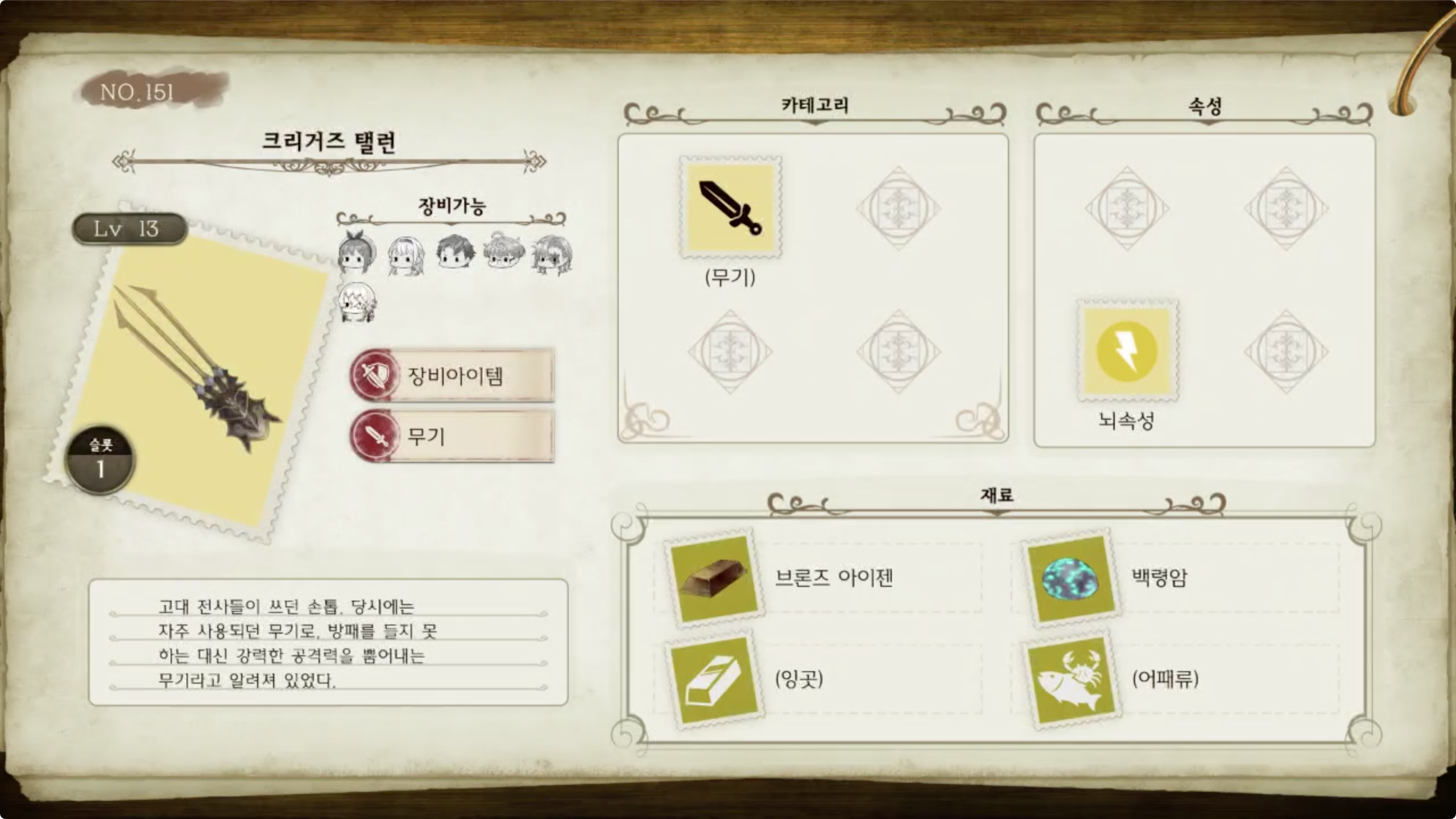 라이자의 아틀리에 - 아이템 도감 NO.151 크리거즈 탤런