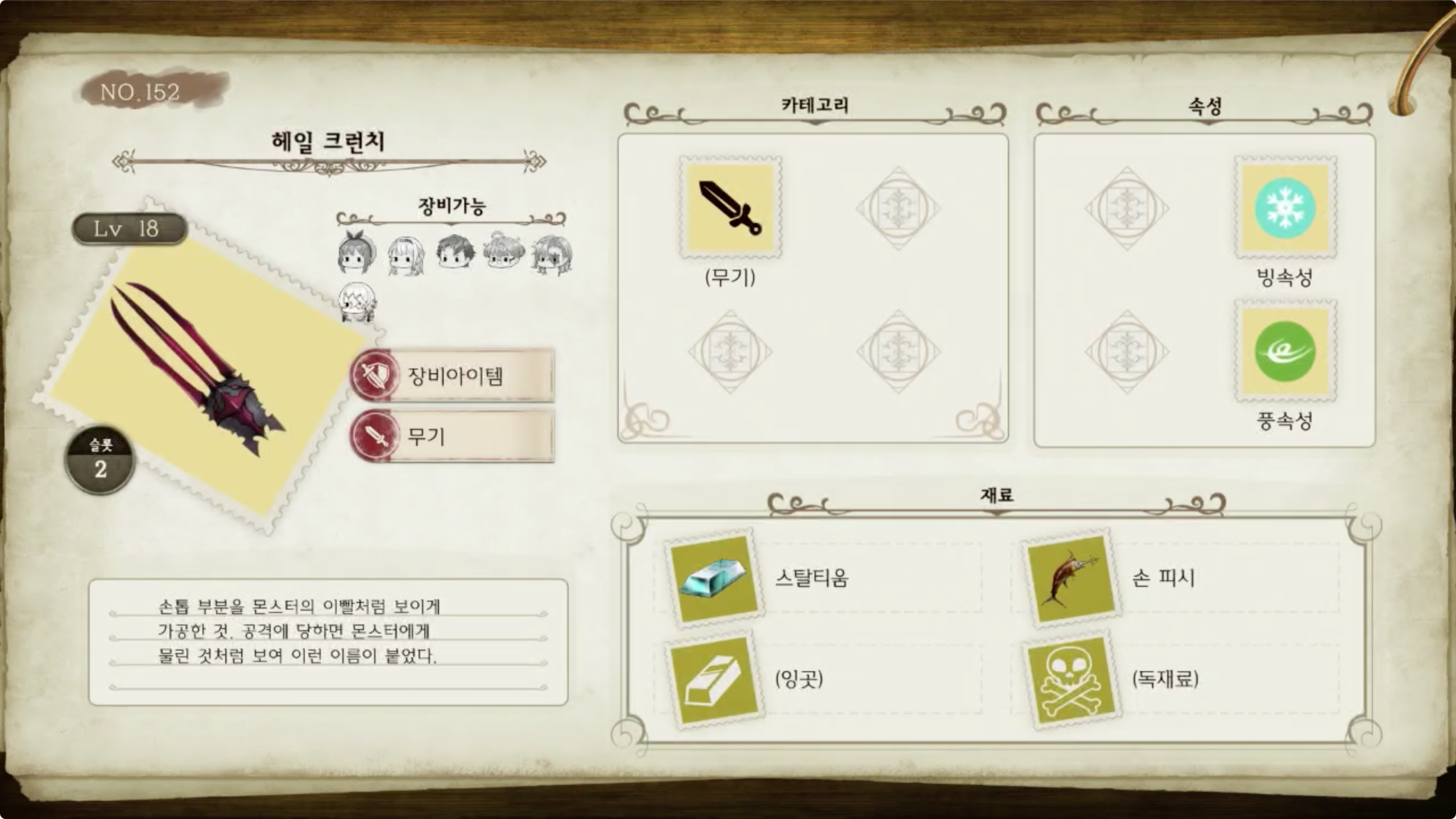 라이자의 아틀리에 - 아이템 도감 NO.152 헤일 크런치